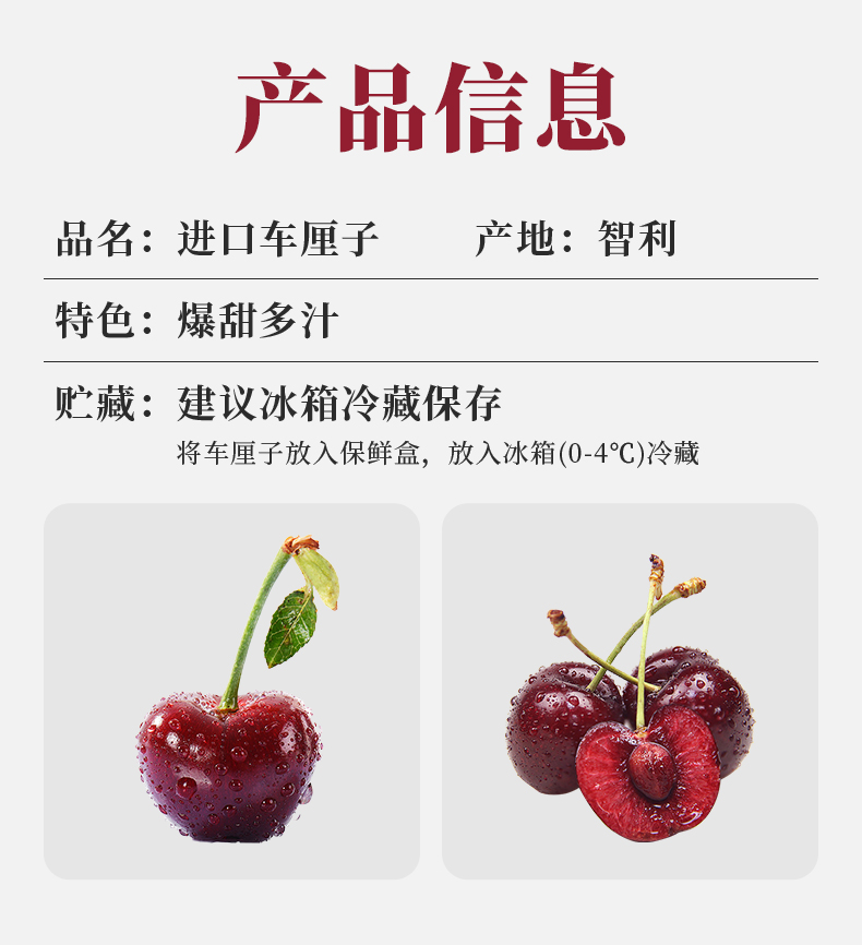 冬日限定!智利核心产区进口车厘子J/2J级2.5kg 脆硬香甜 品质甄选