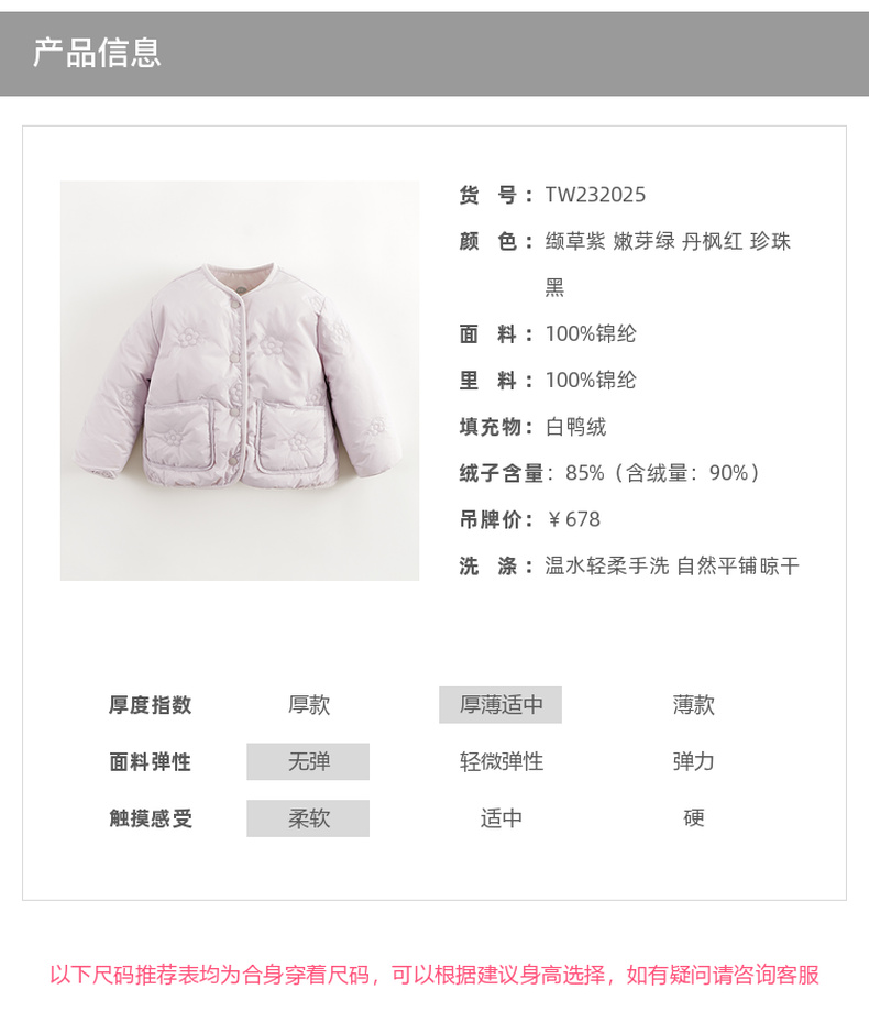【马克珍妮 芦芙】秋冬新款 女童甜美花朵绗缝轻薄羽绒服232025