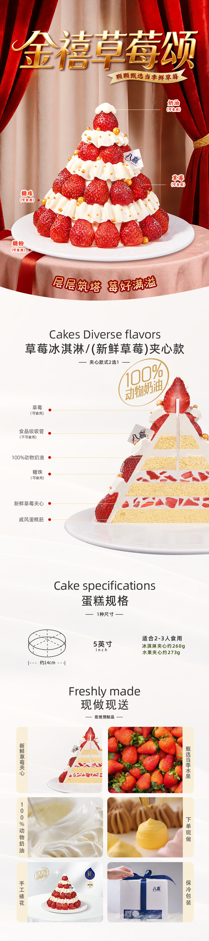 ※【金禧草莓颂】5英寸 冰淇淋/草莓生日蛋糕