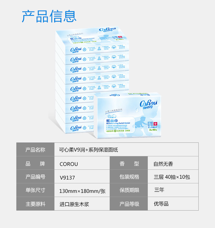 【温和无刺激,至柔纸面巾】可心柔V9婴儿柔纸巾抽纸云柔巾宝宝家用乳霜纸儿童保湿纸巾120抽*16包家庭装40抽*40包便携装