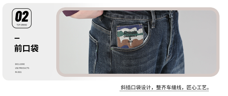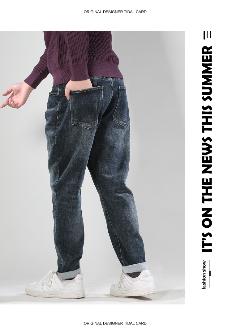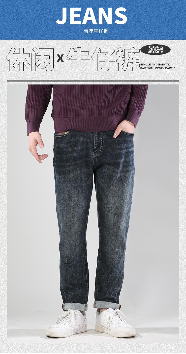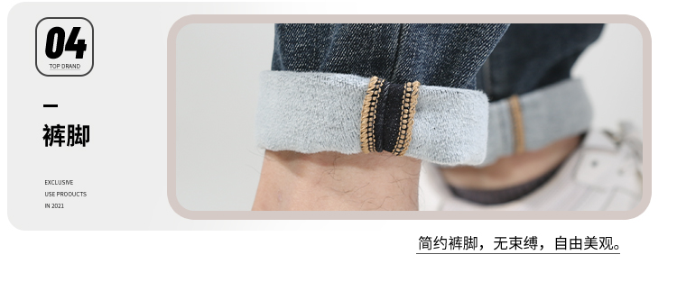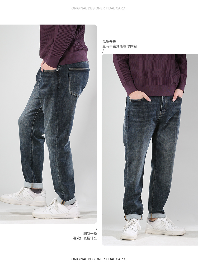 DRONKOO 2024 正常腰表袋英文布标三色绣一体绒厚牛仔长裤