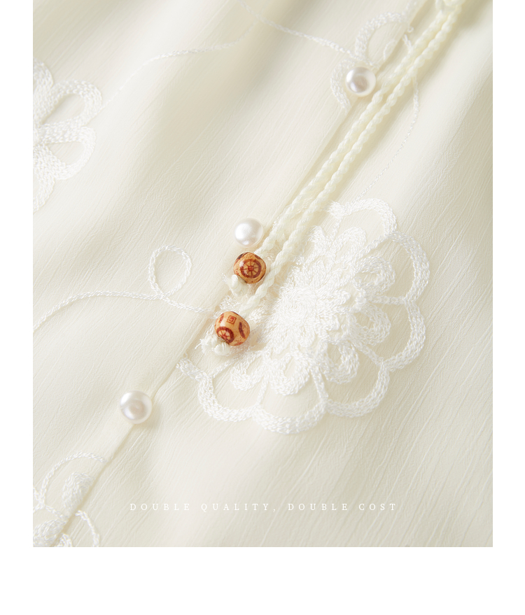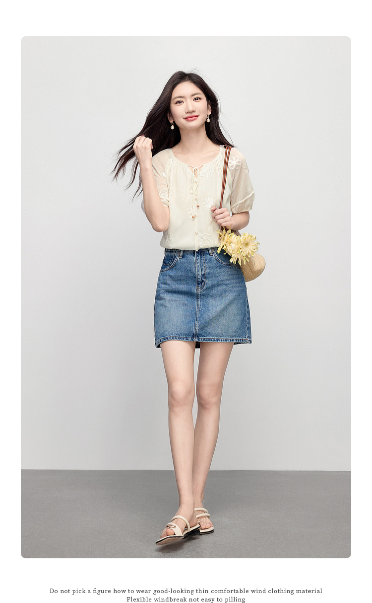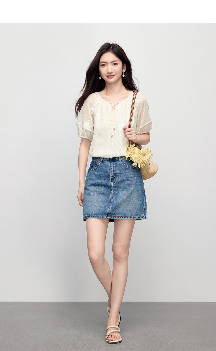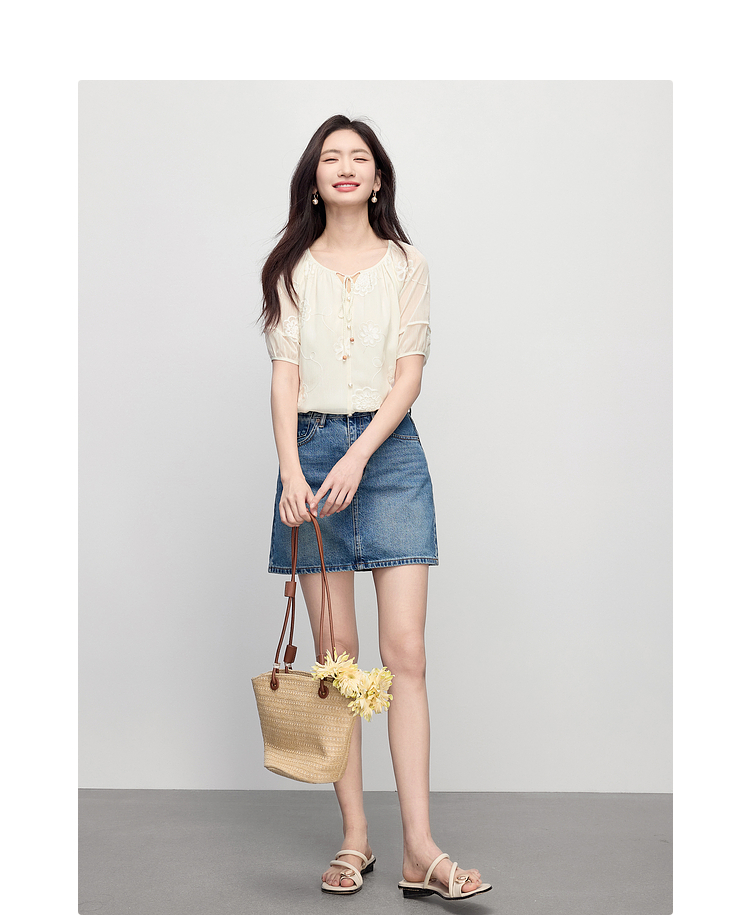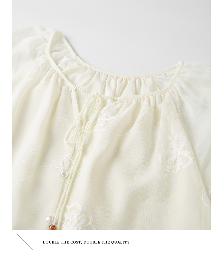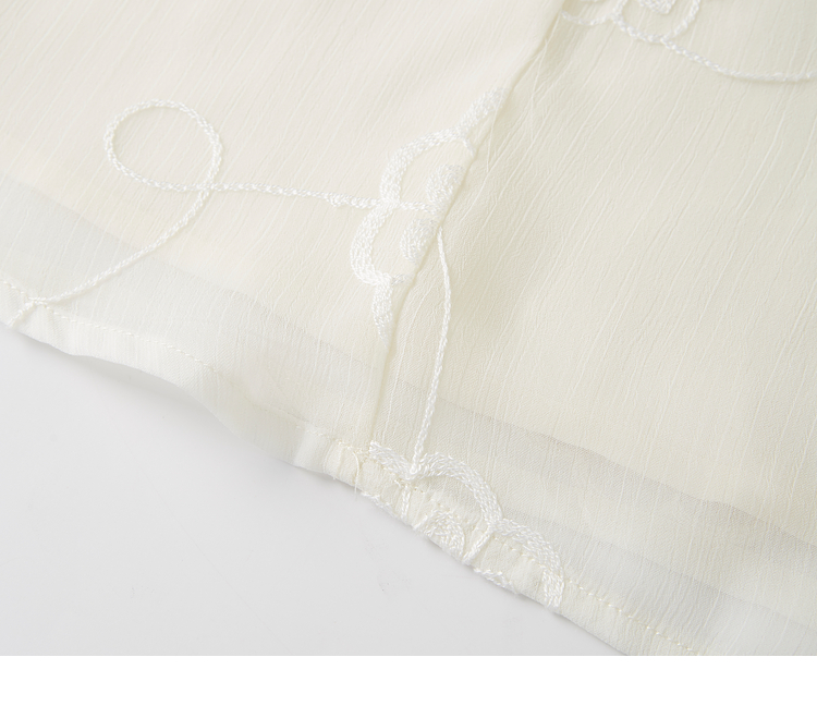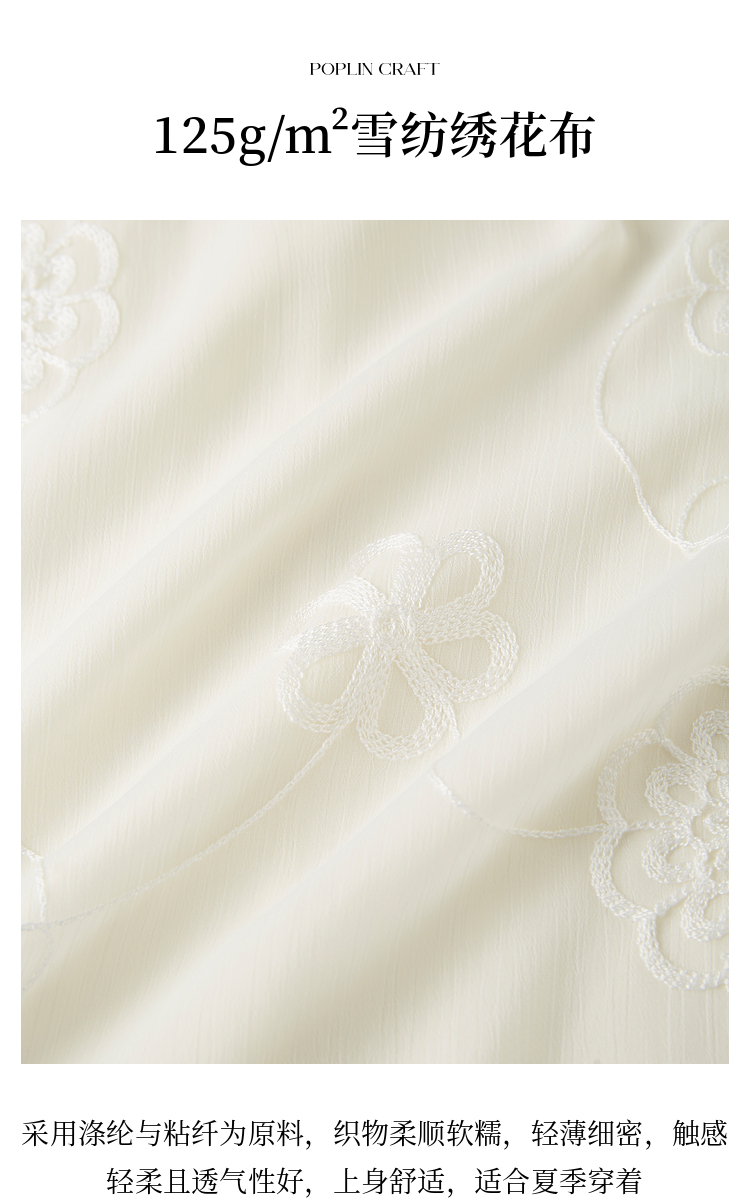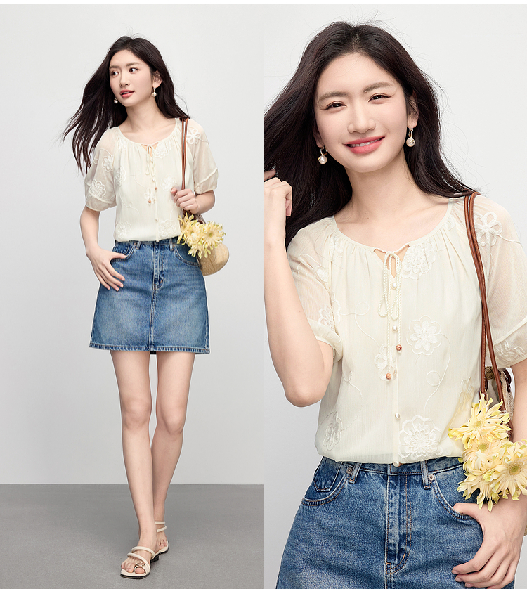 【周末秒杀】熙世界法式雪纺衬衫女夏季2025新款女装轻盈气质短袖绣花小衫上衣