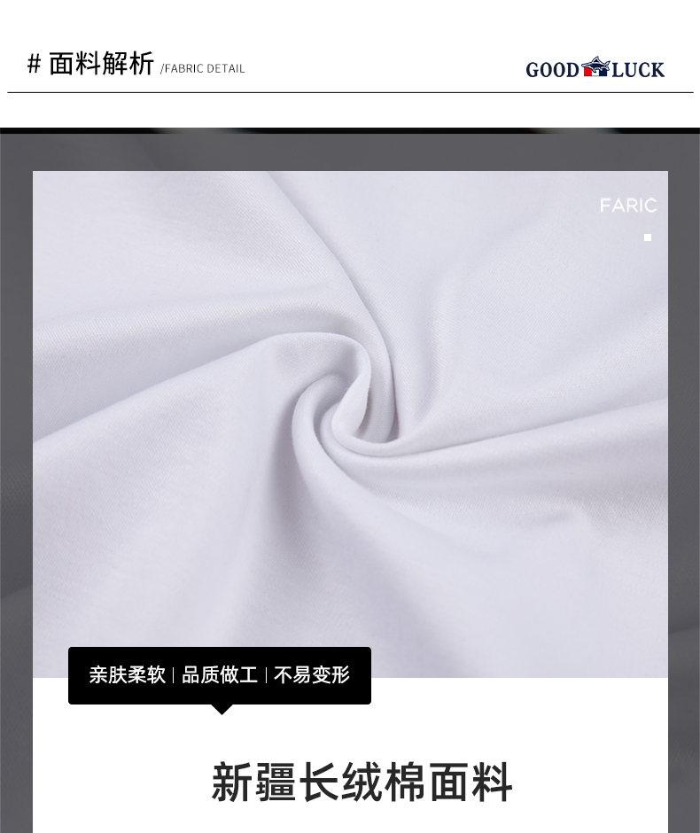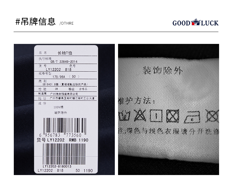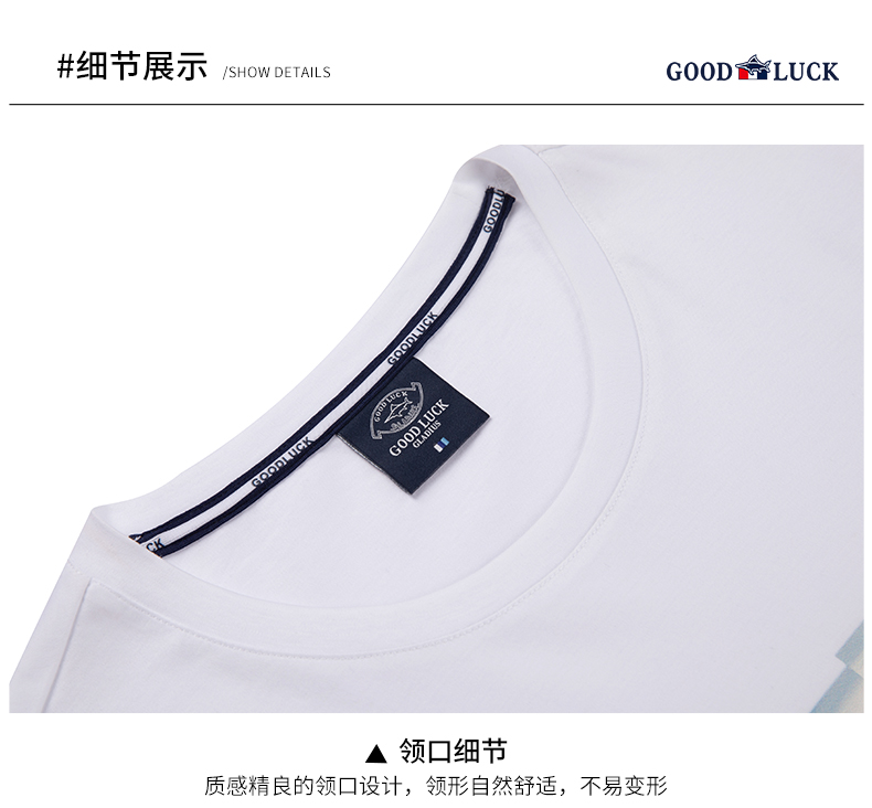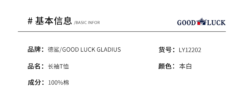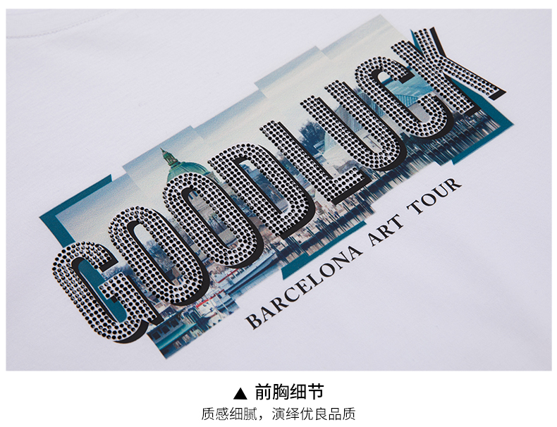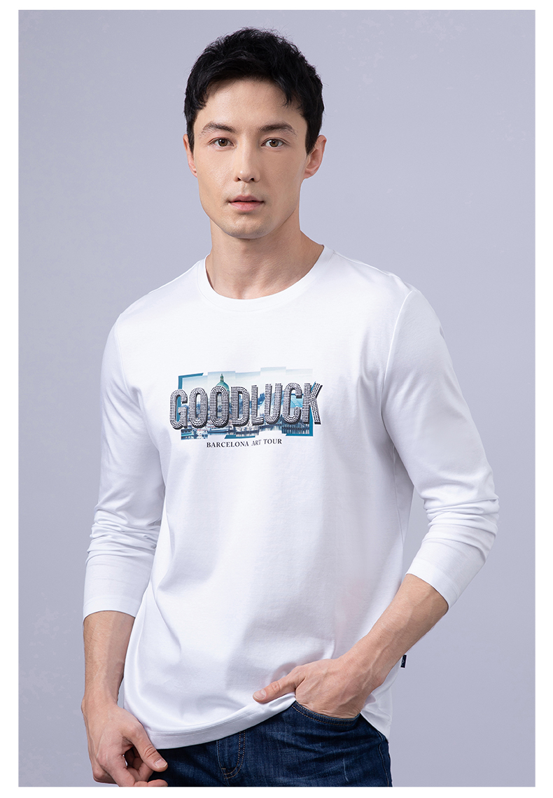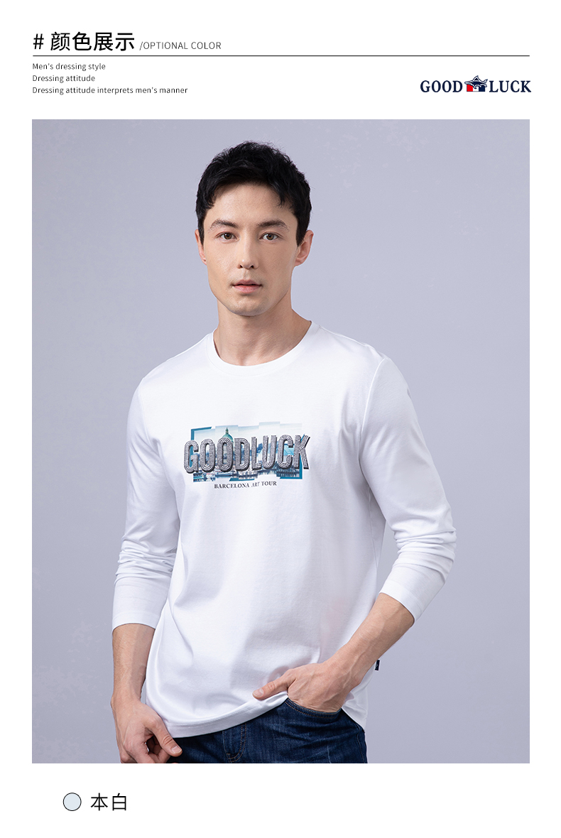 GOOD LUCK/德鲨100%棉亲肤舒适前胸烫钻工艺圆领长袖T恤LY12202-818