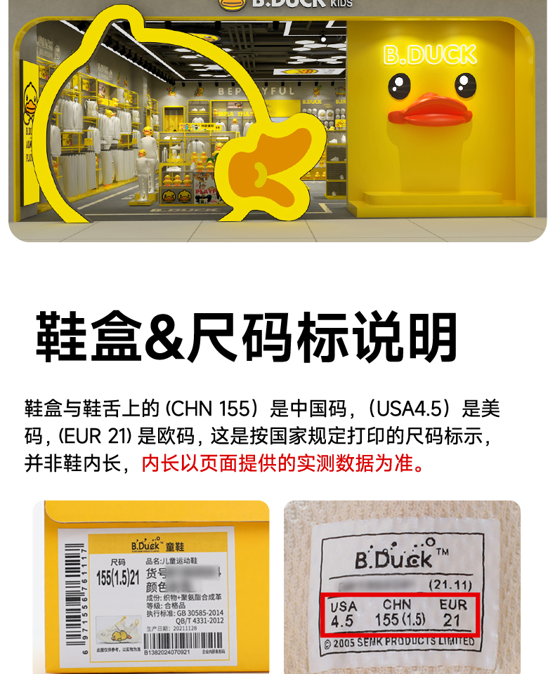 B.Duck小黄鸭童鞋春秋软底机能德训鞋22-30 B3686949