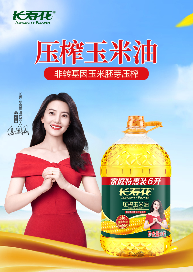 长寿花玉米油6L非转基因压榨一级玉米胚芽植物油食用油桶装