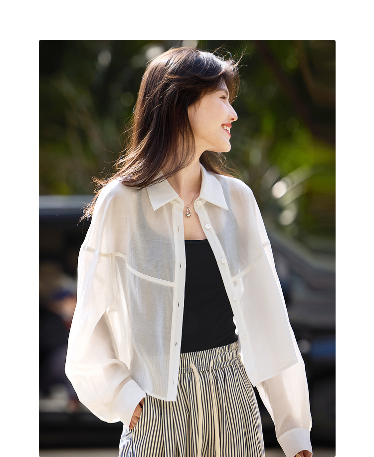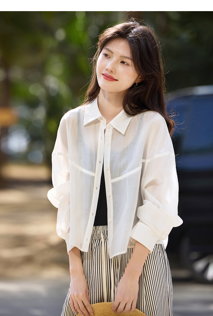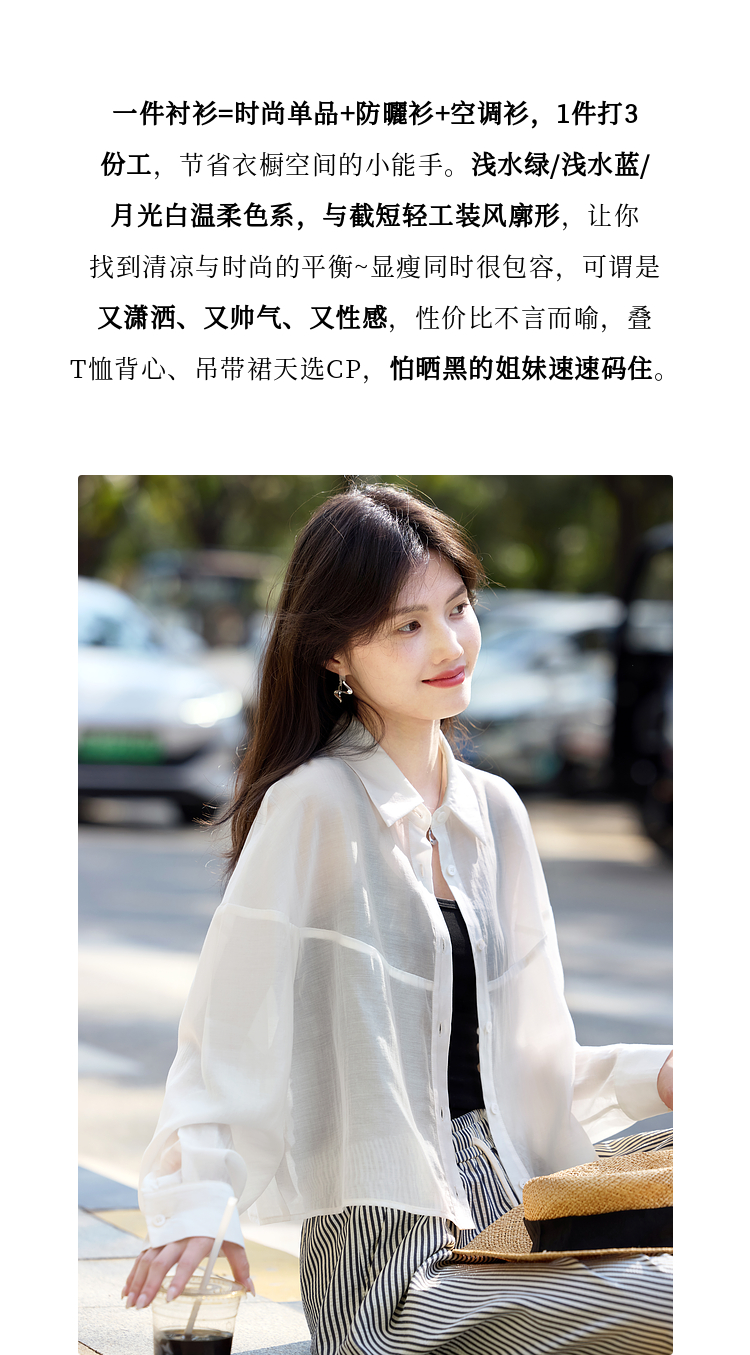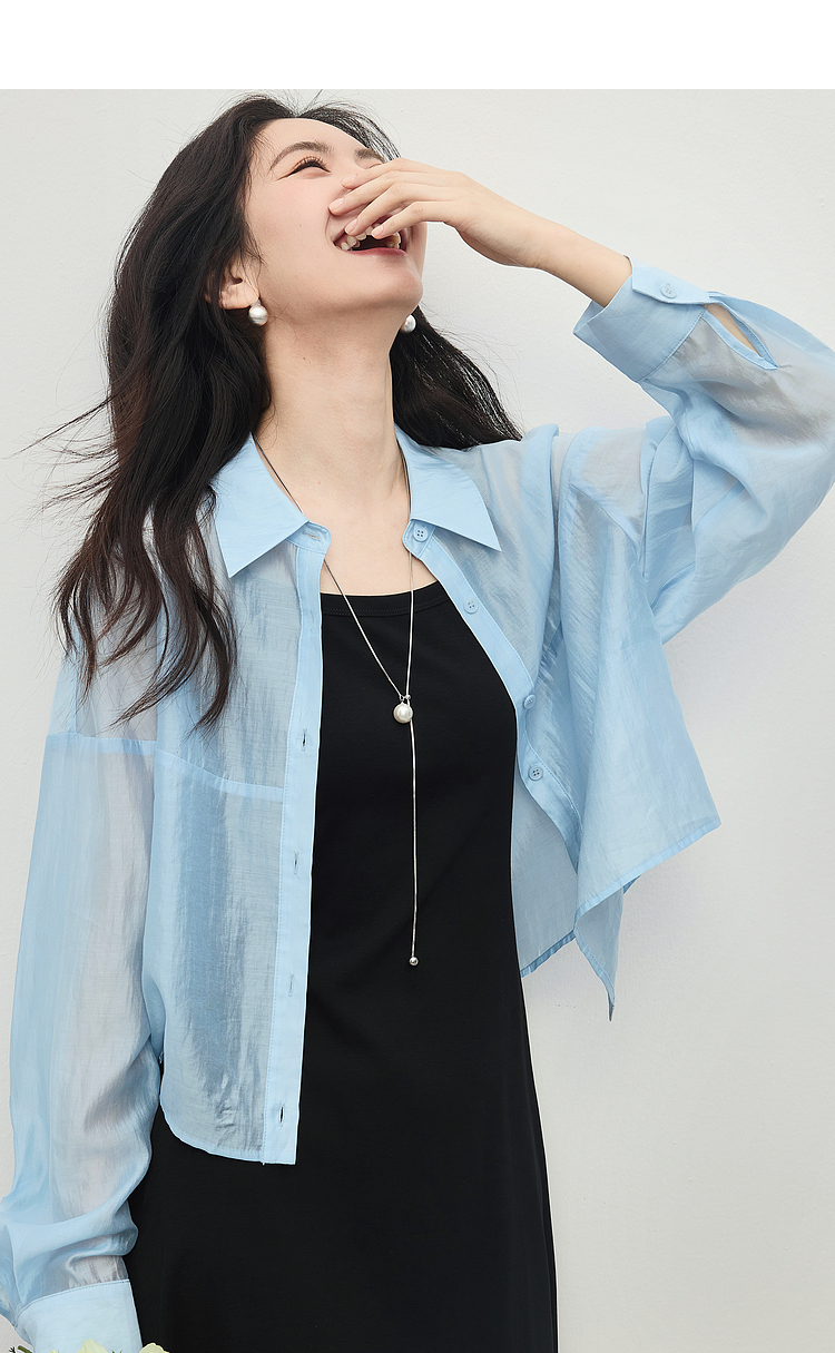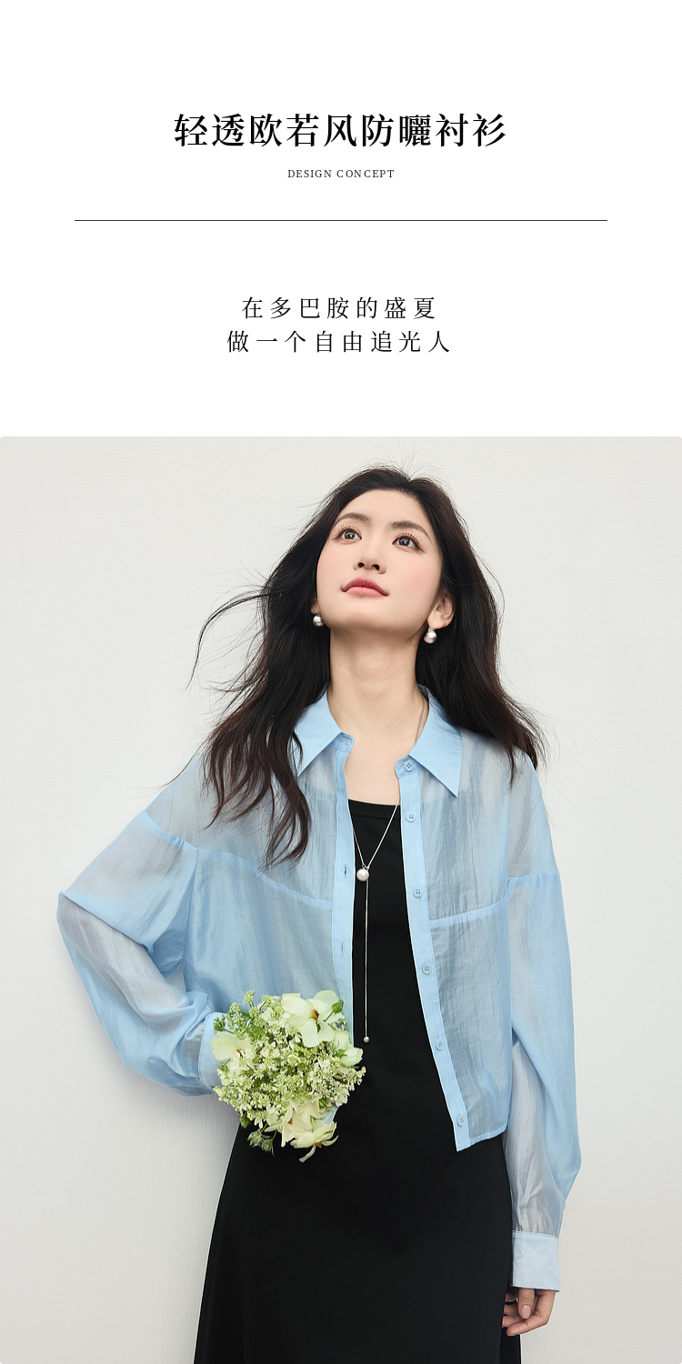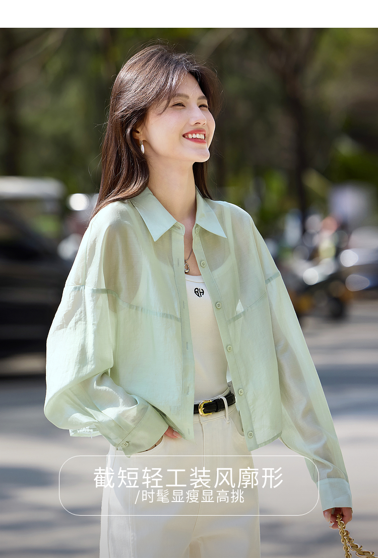 【夏日新品】熙世界防晒轻薄衬衫女短款2025夏季户外穿搭宽松长袖外搭小衫上衣