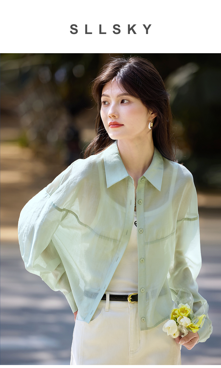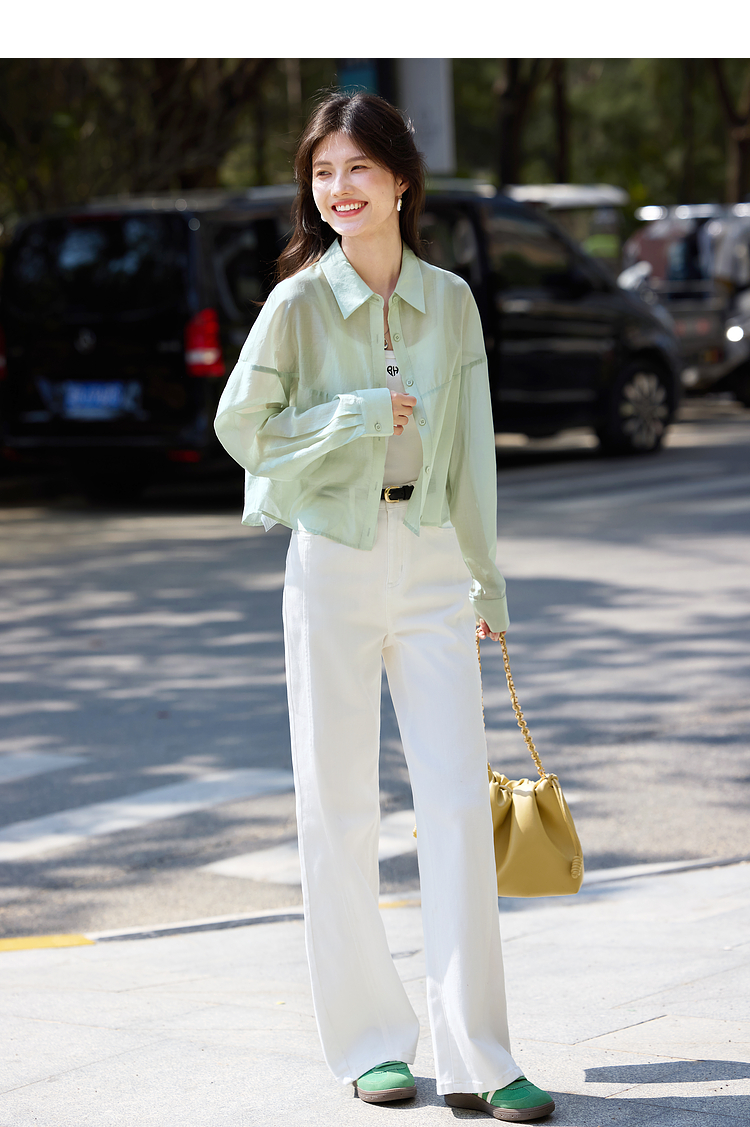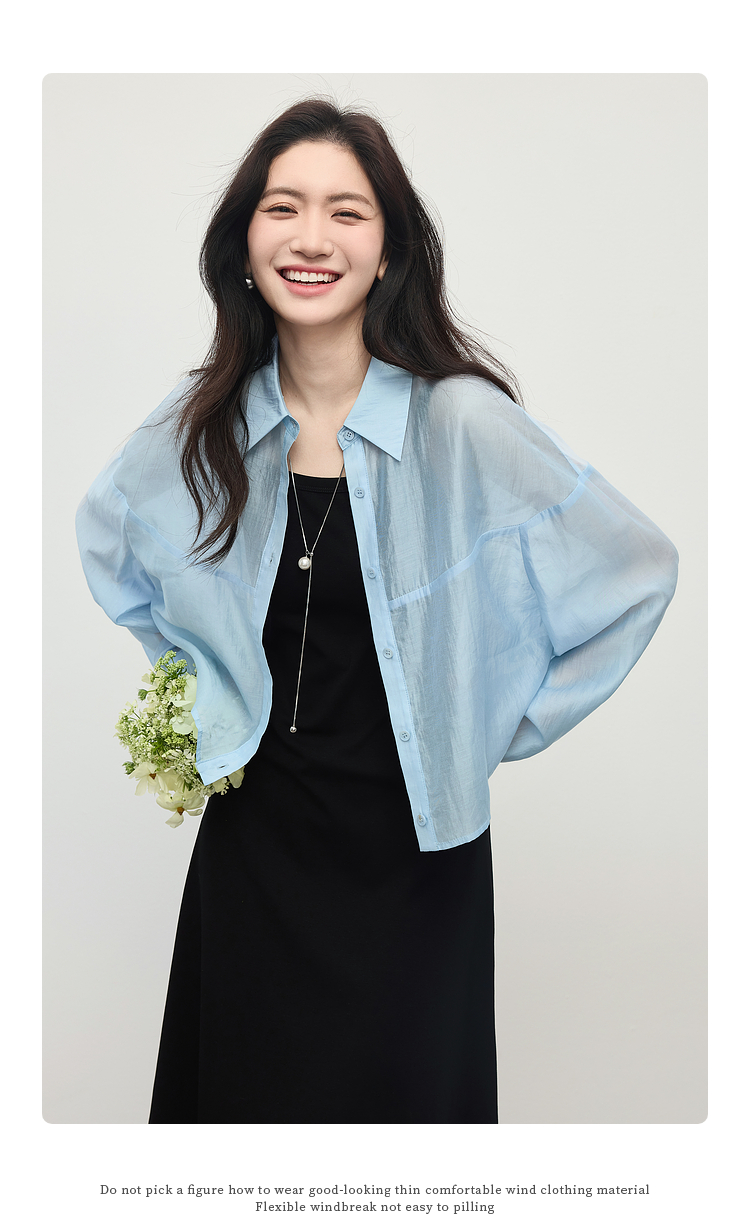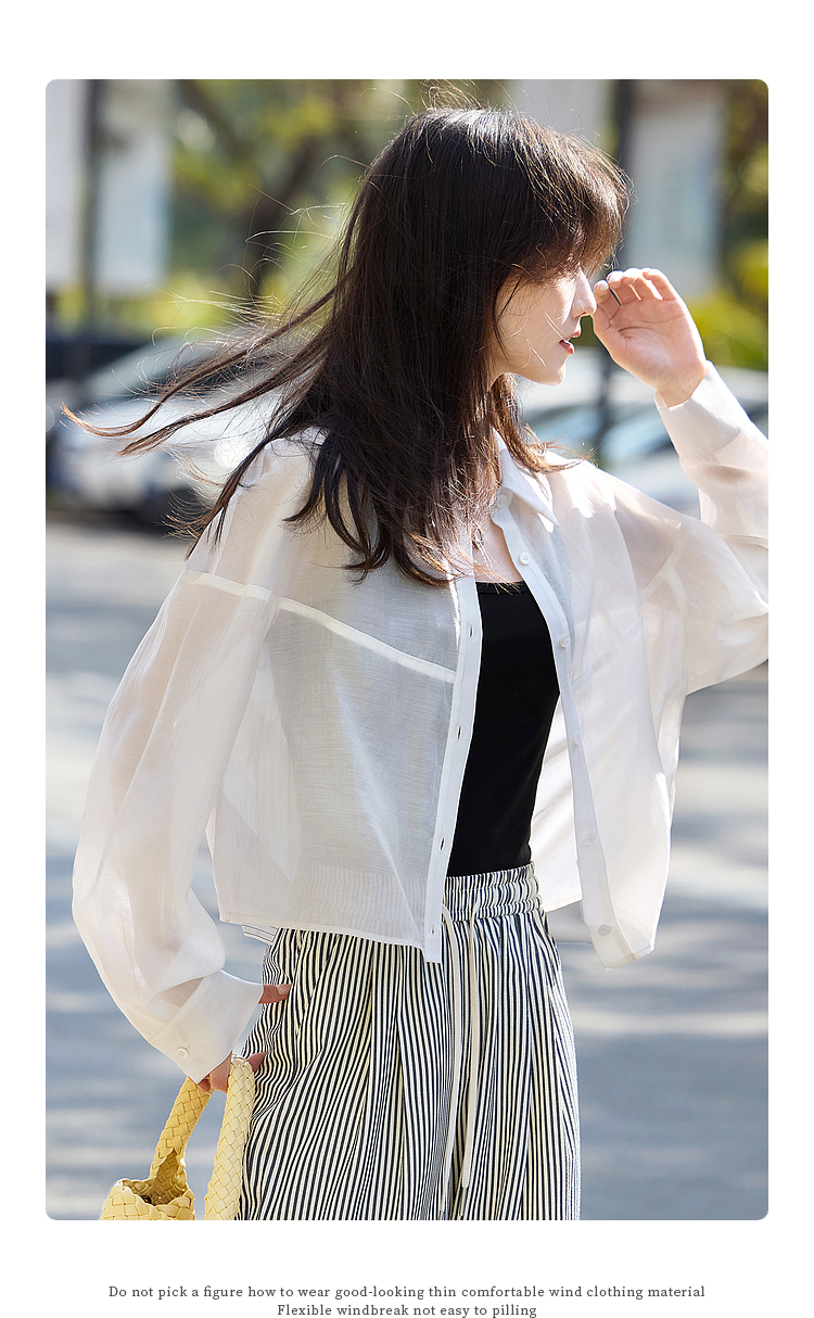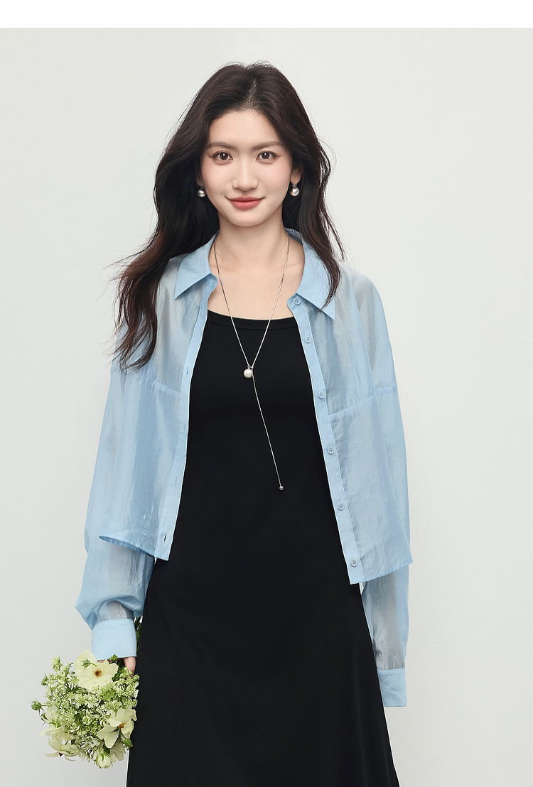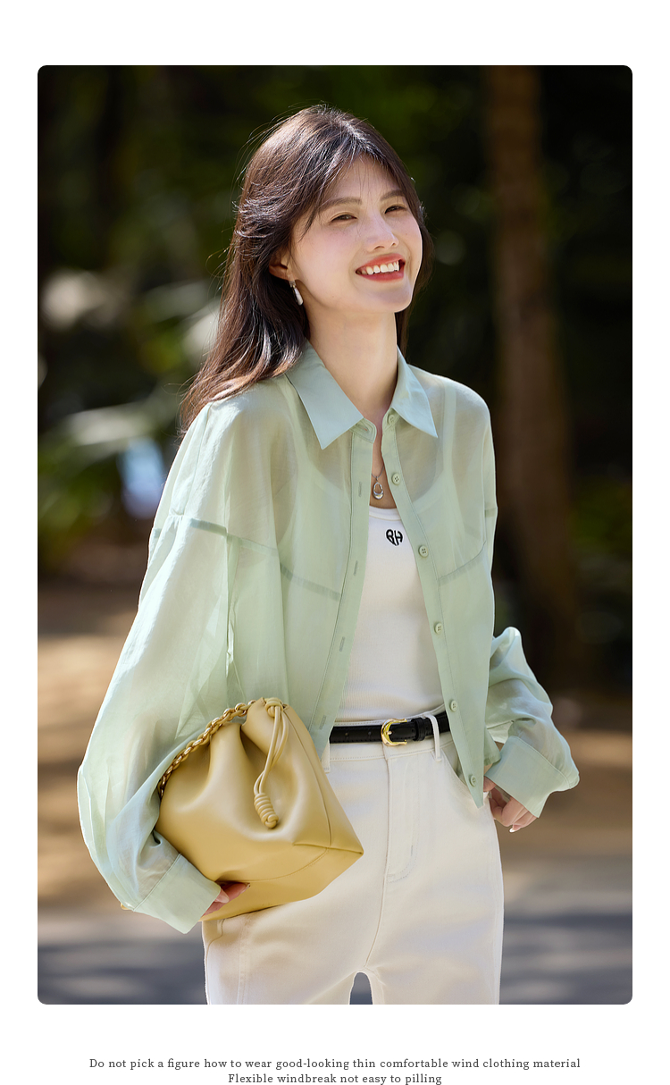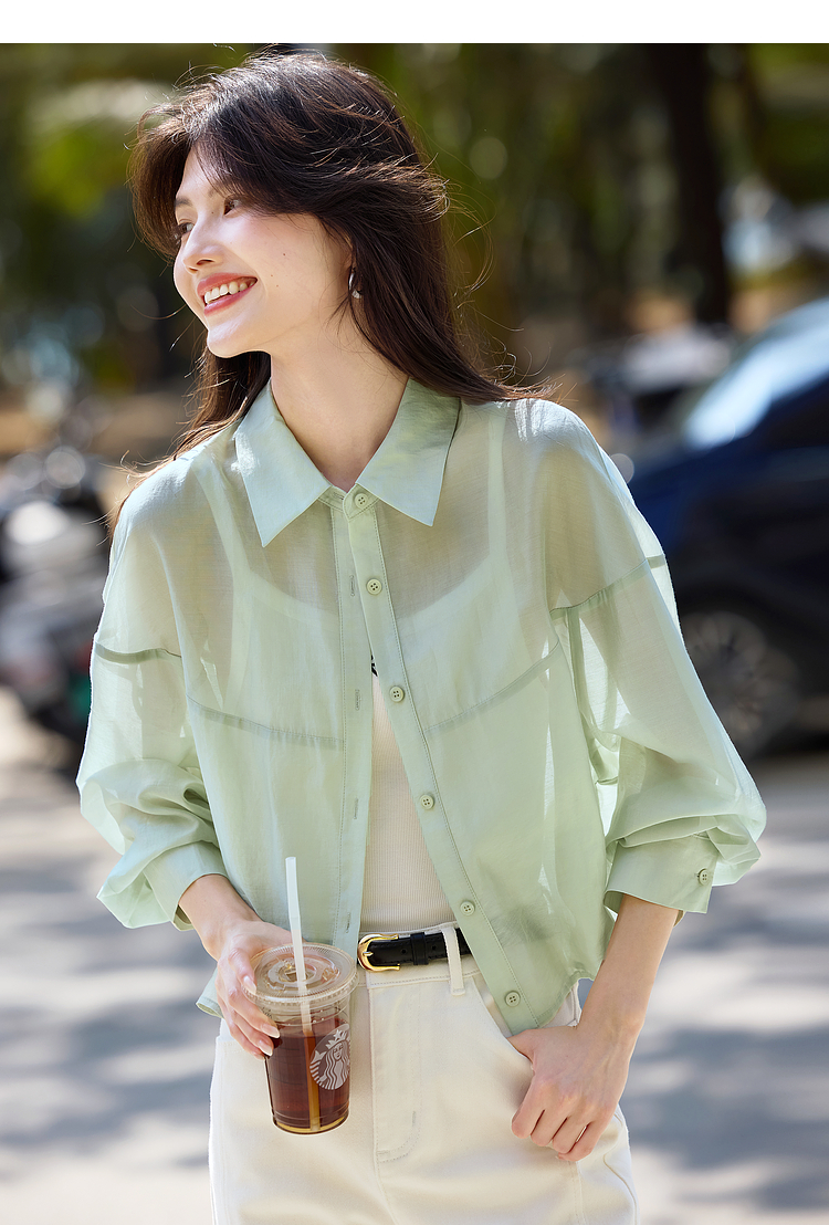 【夏日新品】熙世界防晒轻薄衬衫女短款2025夏季户外穿搭宽松长袖外搭小衫上衣