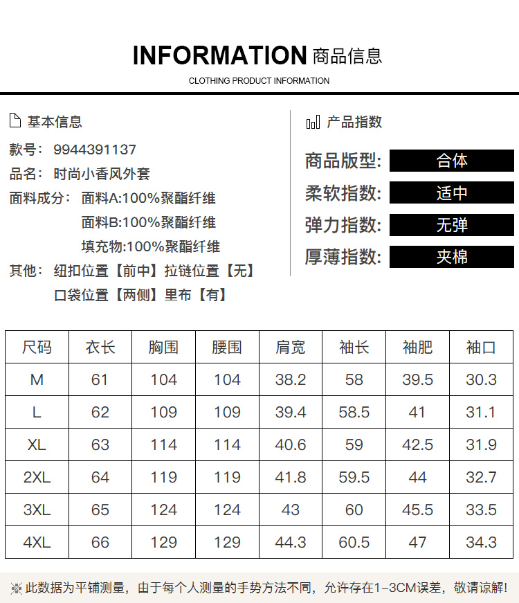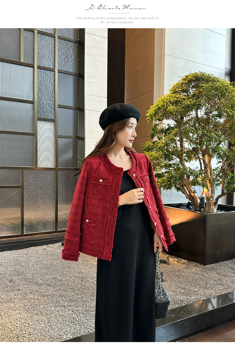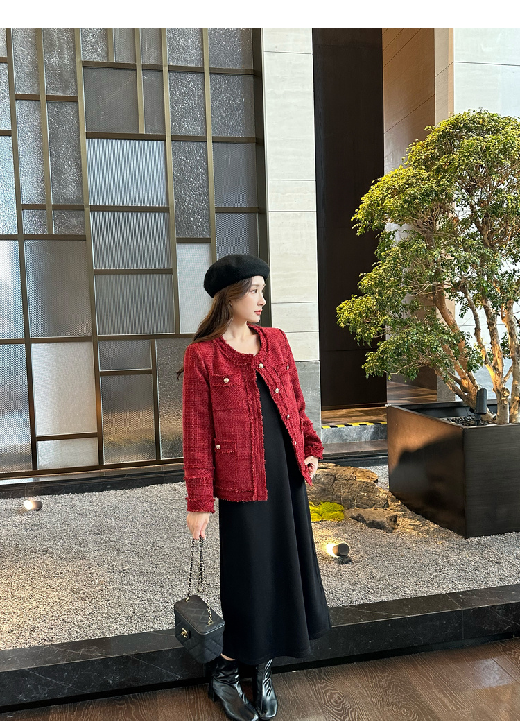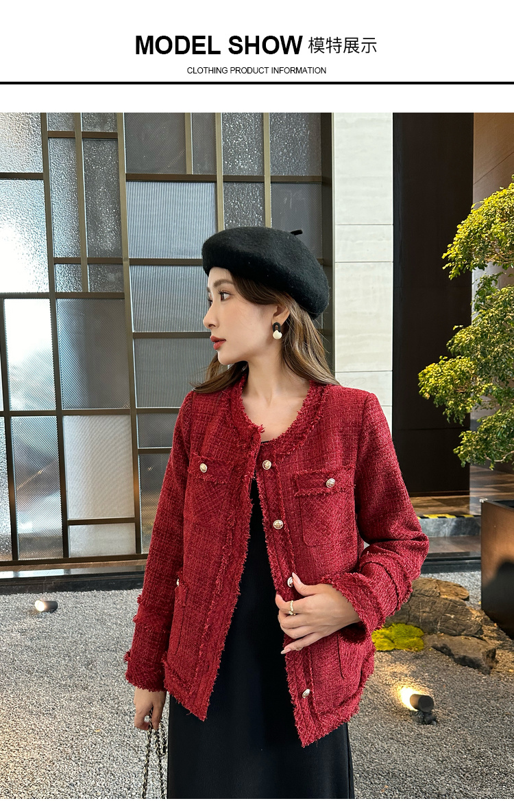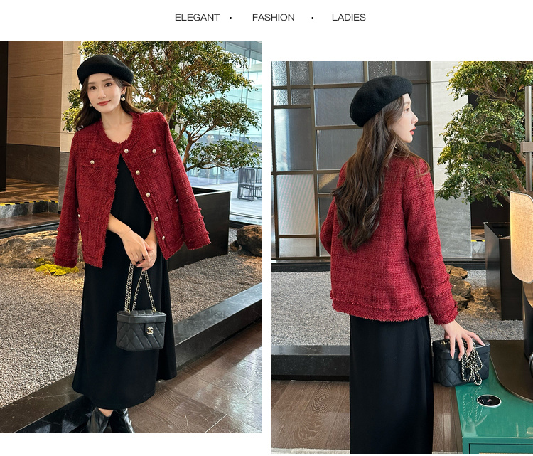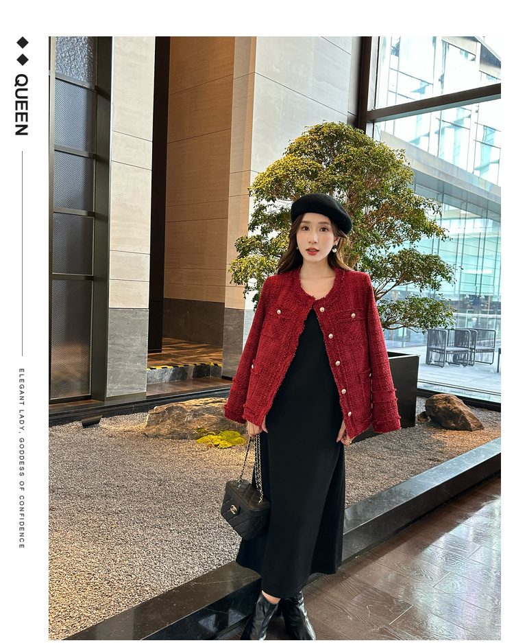 奢姿大码女装2024冬季胖妹妹减龄粗花呢小香风时单排扣时尚外套9944391137