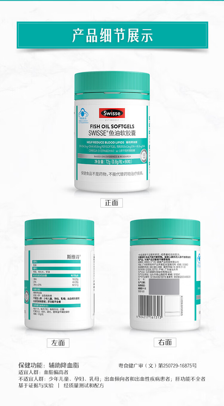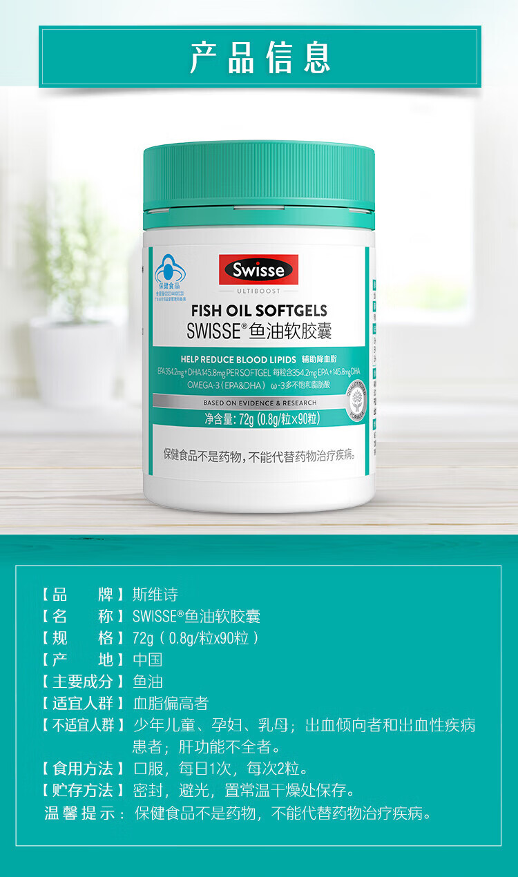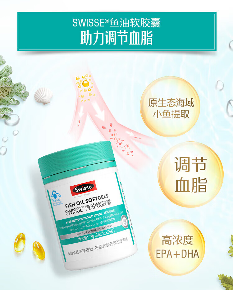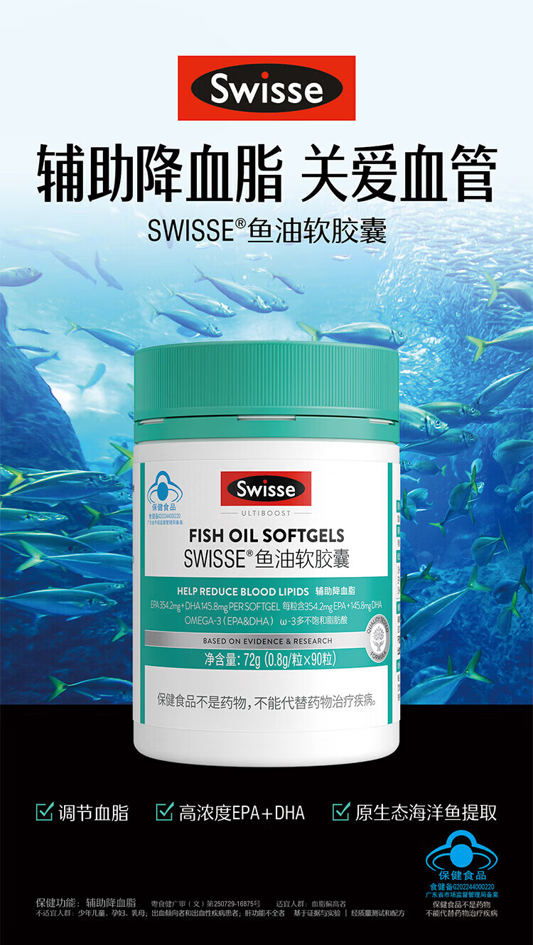 【国内版】Swisse 斯维诗鱼油软胶囊 90粒装 辅助降血脂