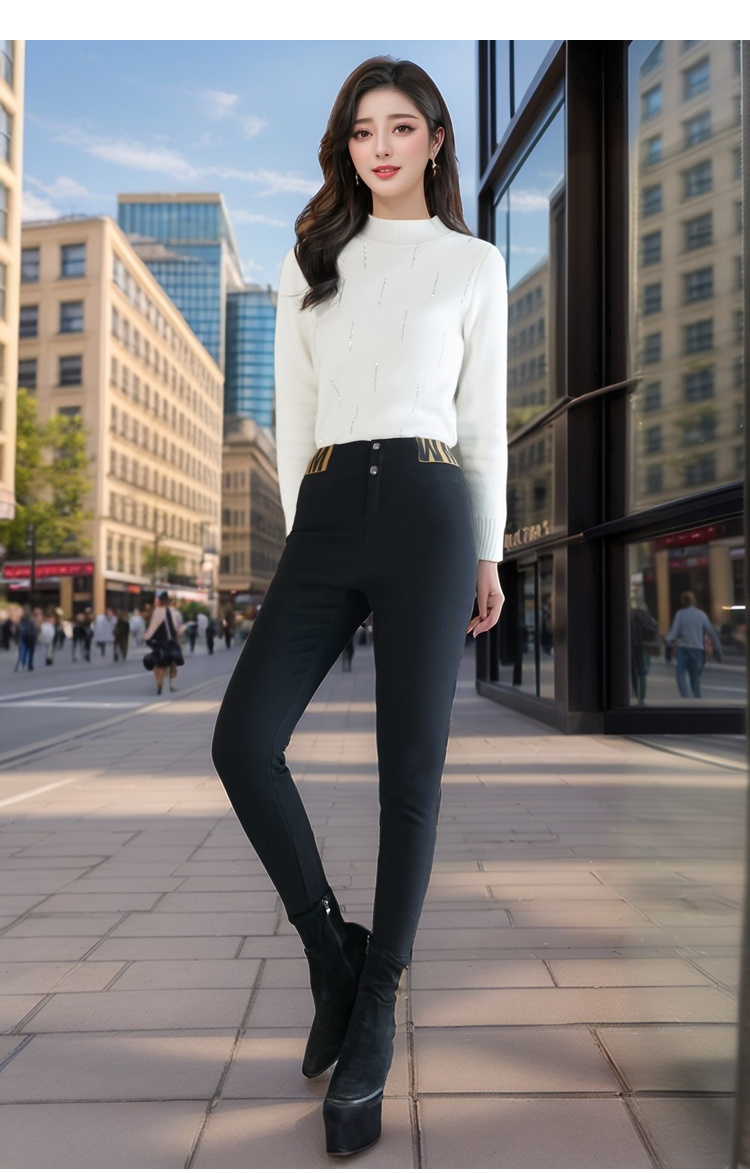 奢姿2024年冬季新款胖妹妹减龄字母时尚加绒裤子大码女装休闲裤9914521450