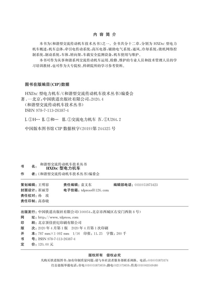 《HXD3C型电力机车》是《和谐型交流传动机车技术丛书》之一,共分十二章,别对机车主要技术性能及参数,机车总体及通风冷却系统、牵引电传动系统、高压电器、辅助电气系统、微机网络控制系统、制动系统、车体及转向架、列车运行控制系统车载设备、机车试用于维护等方面进行了介绍。该书图文并茂、通俗易懂,是一本通用的机车技术科技书籍。