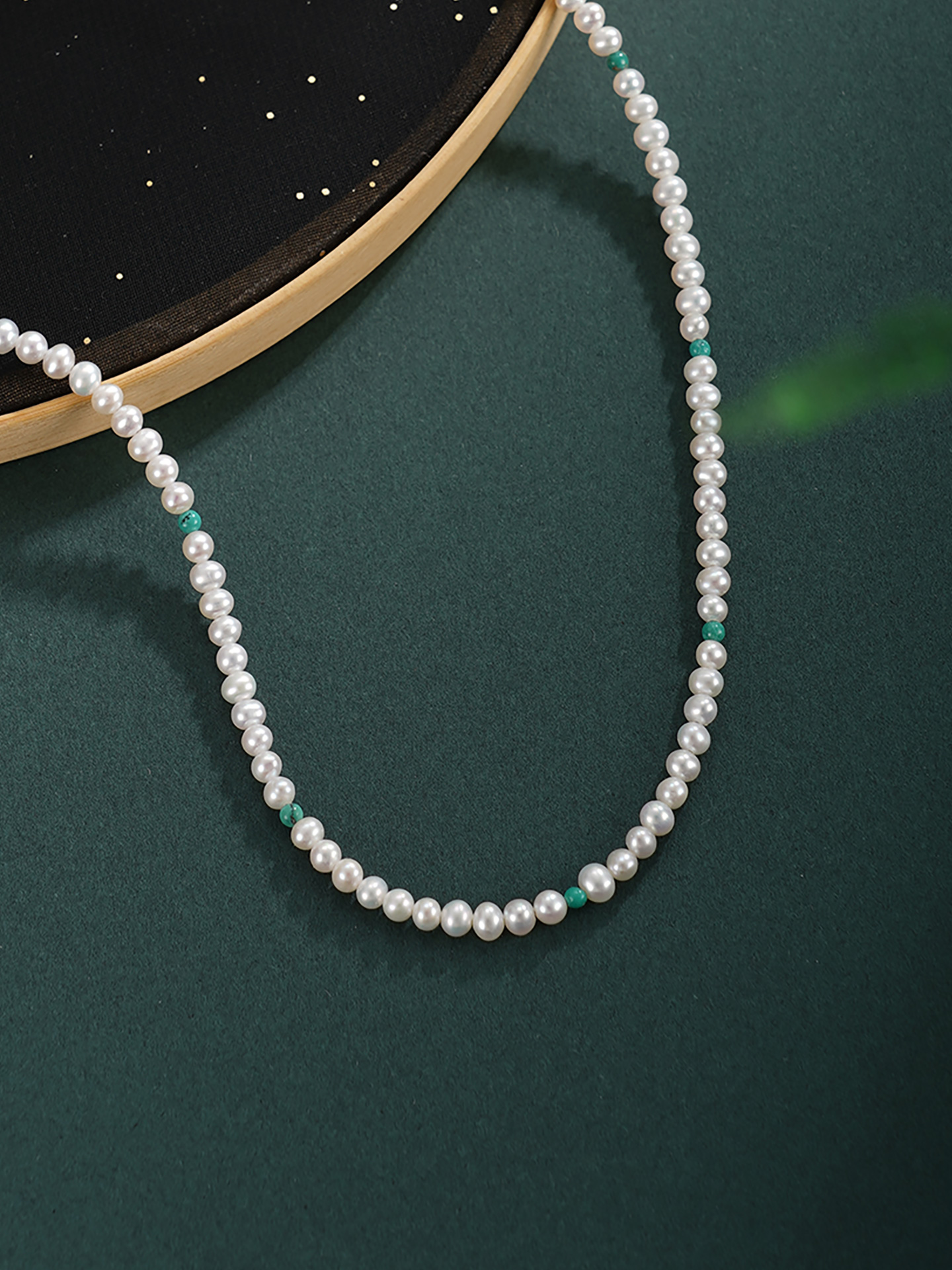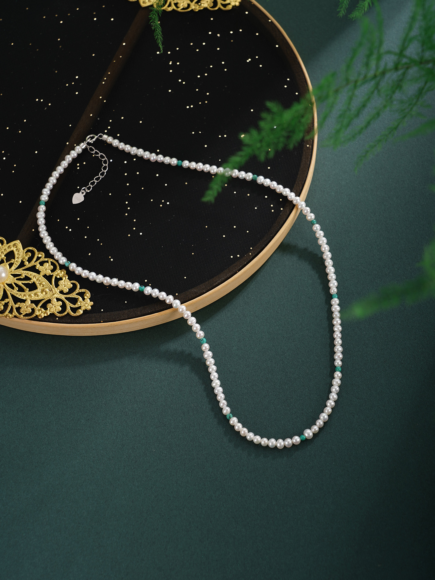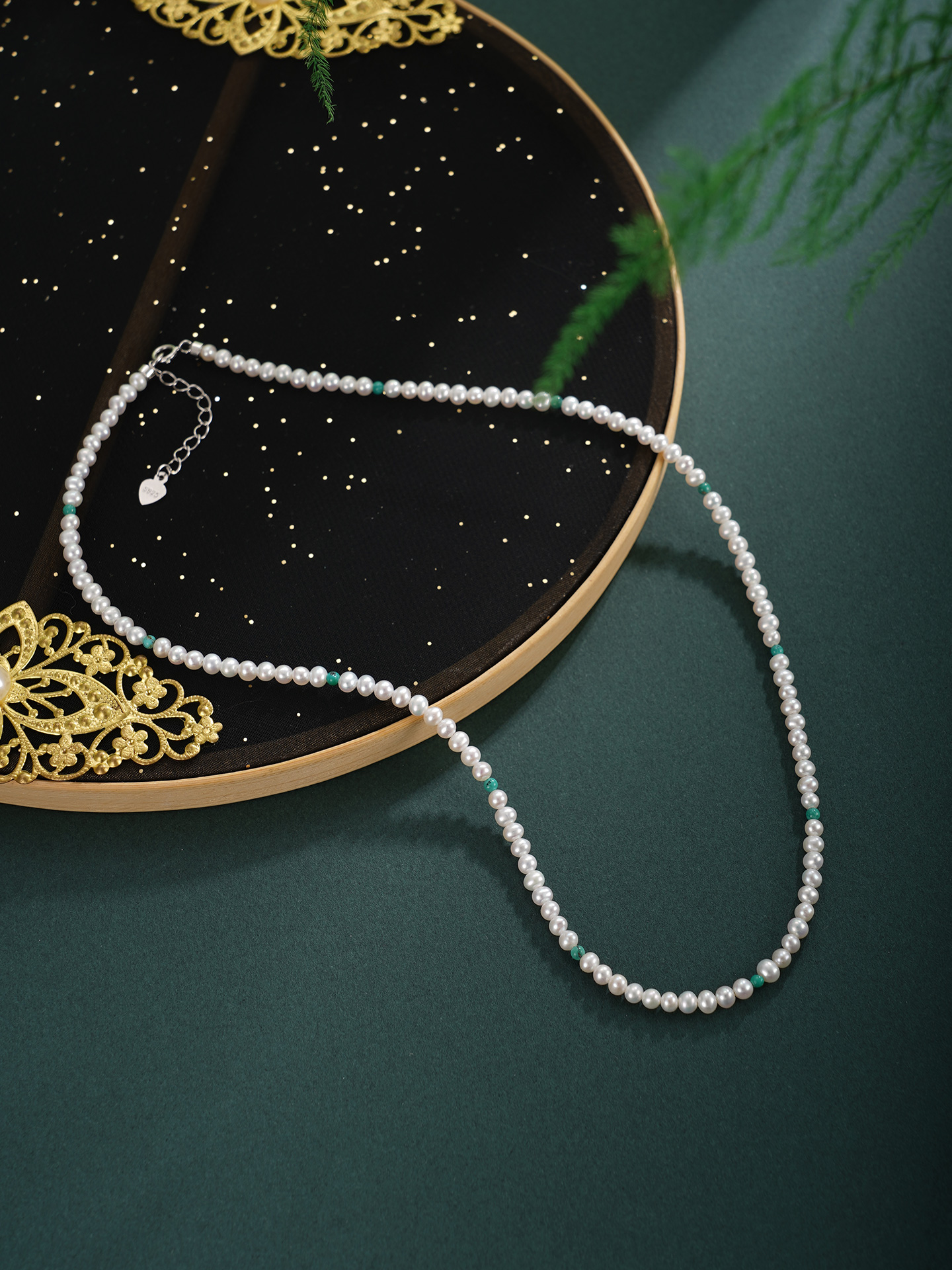 子佩集【碧影清辉】银S925珍珠项链【QNX0020】3mm珠绿松石2512