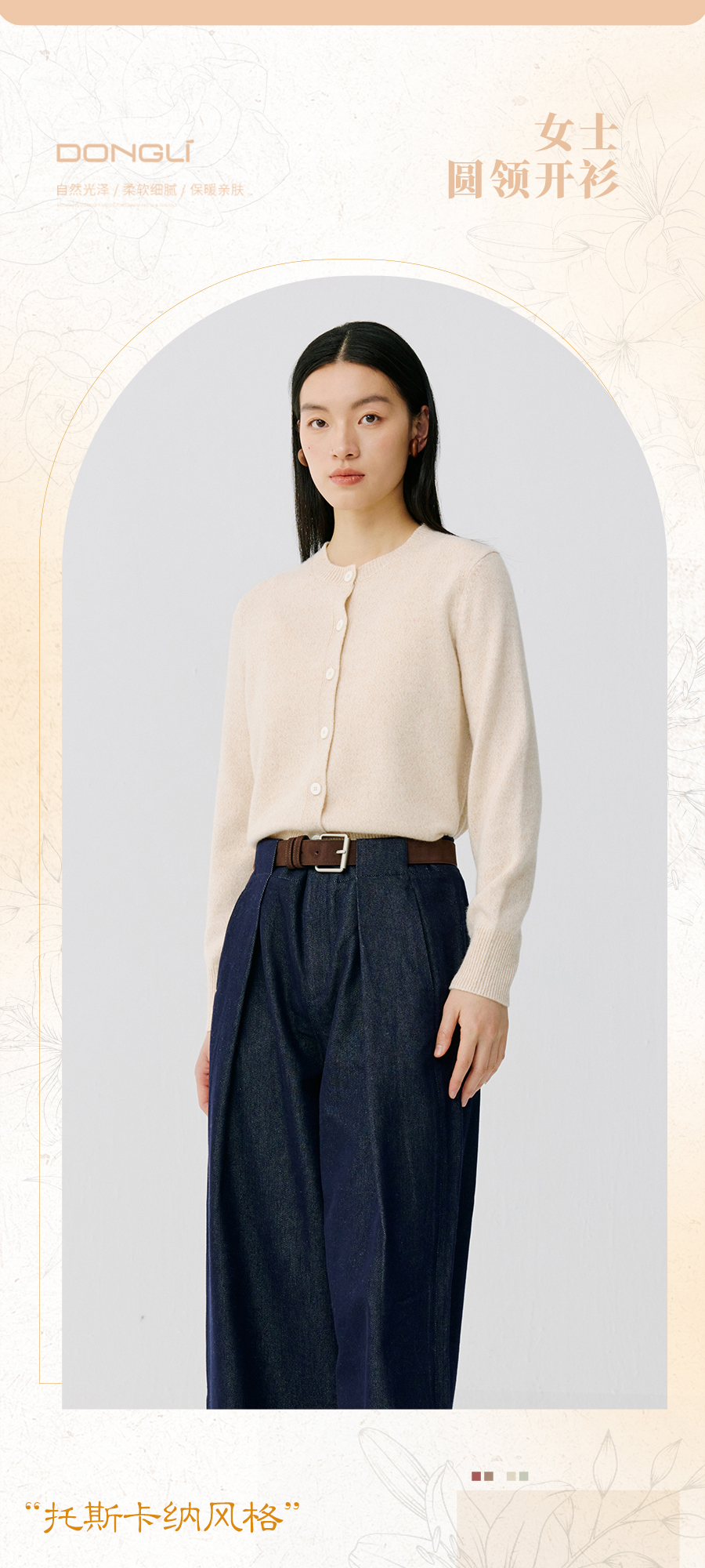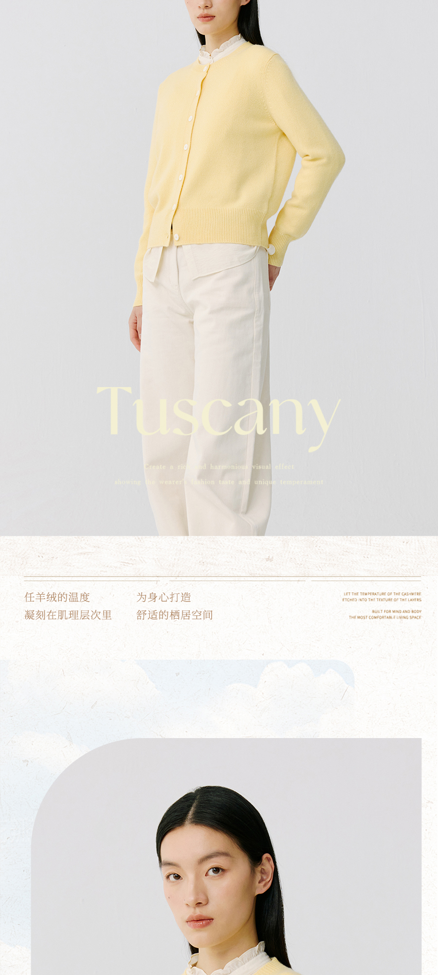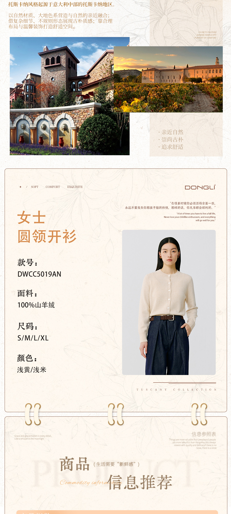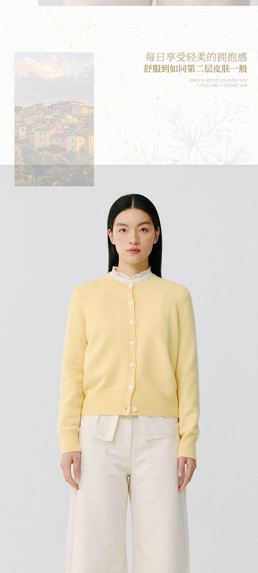 东黎 • 托斯卡纳系列—阳光收藏家 山羊绒春季女士圆领开衫 5019