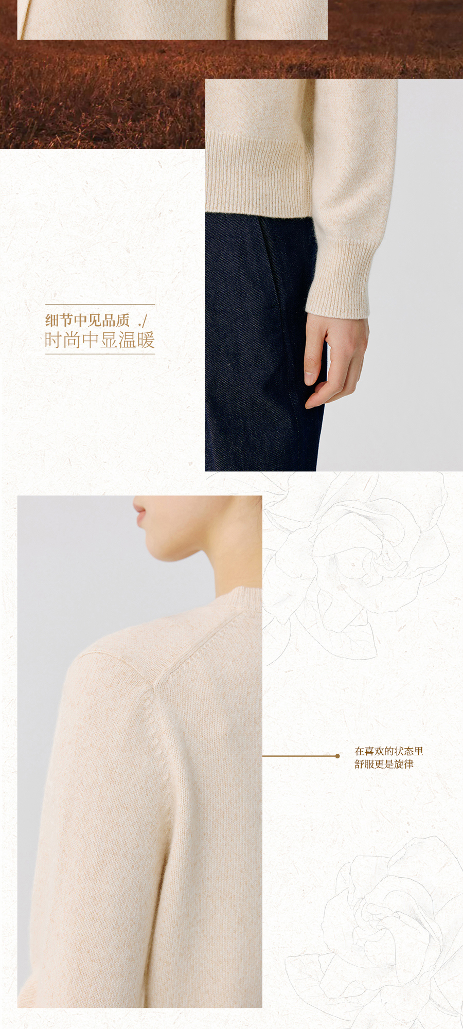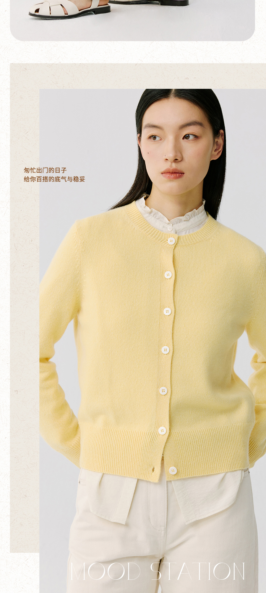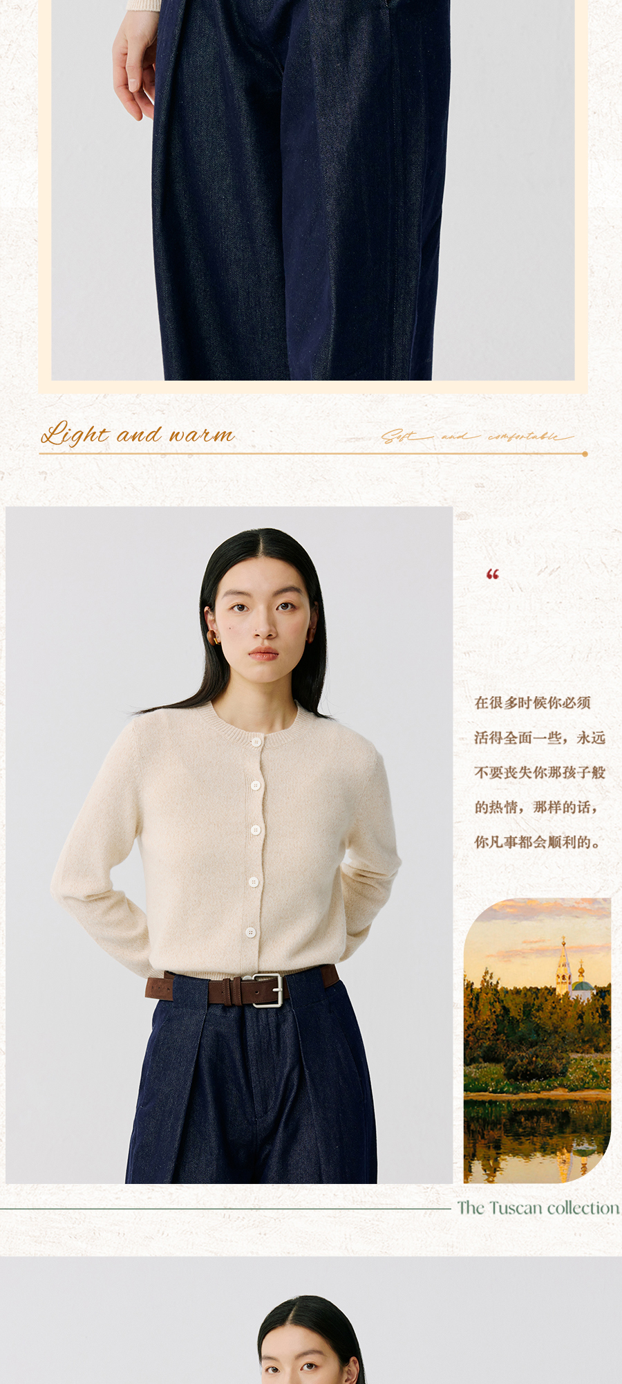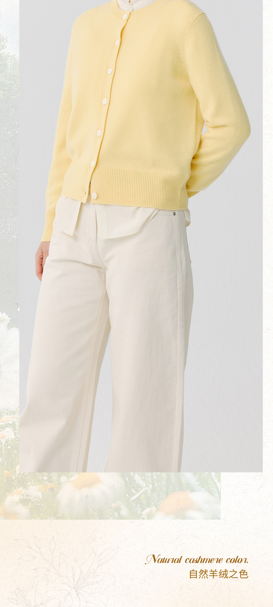 东黎 • 托斯卡纳系列—阳光收藏家 山羊绒春季女士圆领开衫 5019