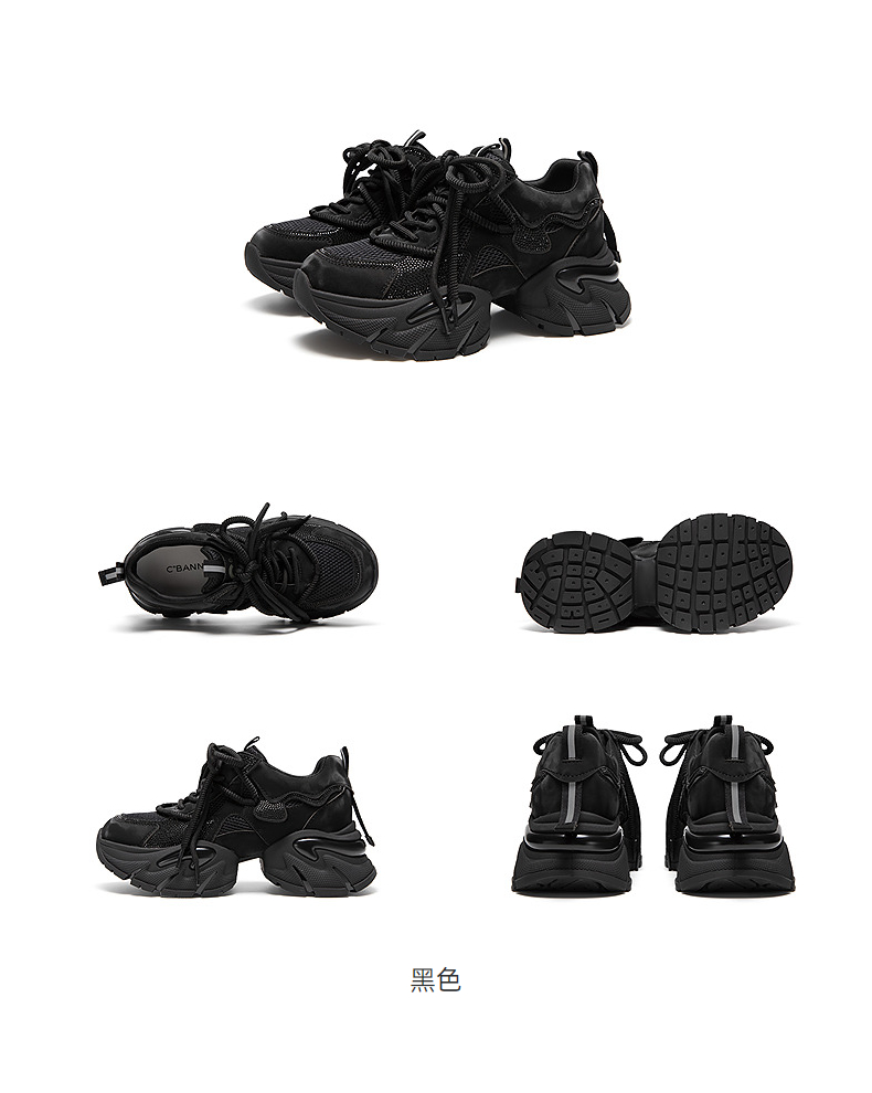 千百度厚底老爹鞋女款增高网面鞋时尚运动休闲鞋透气A25118983