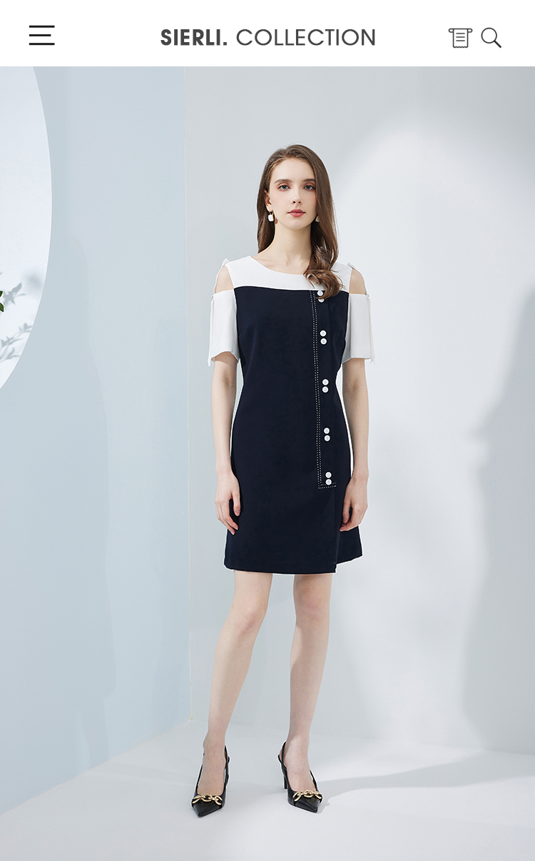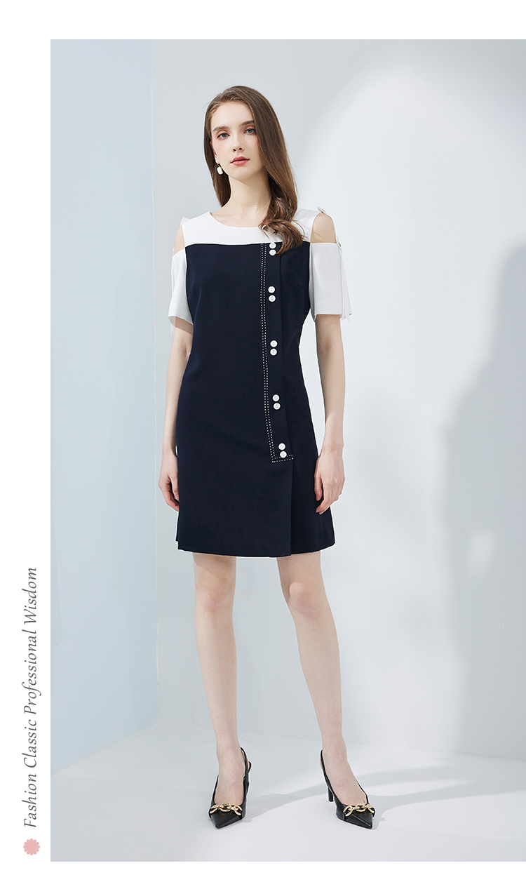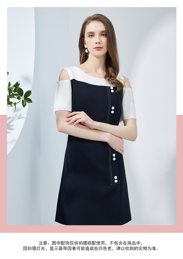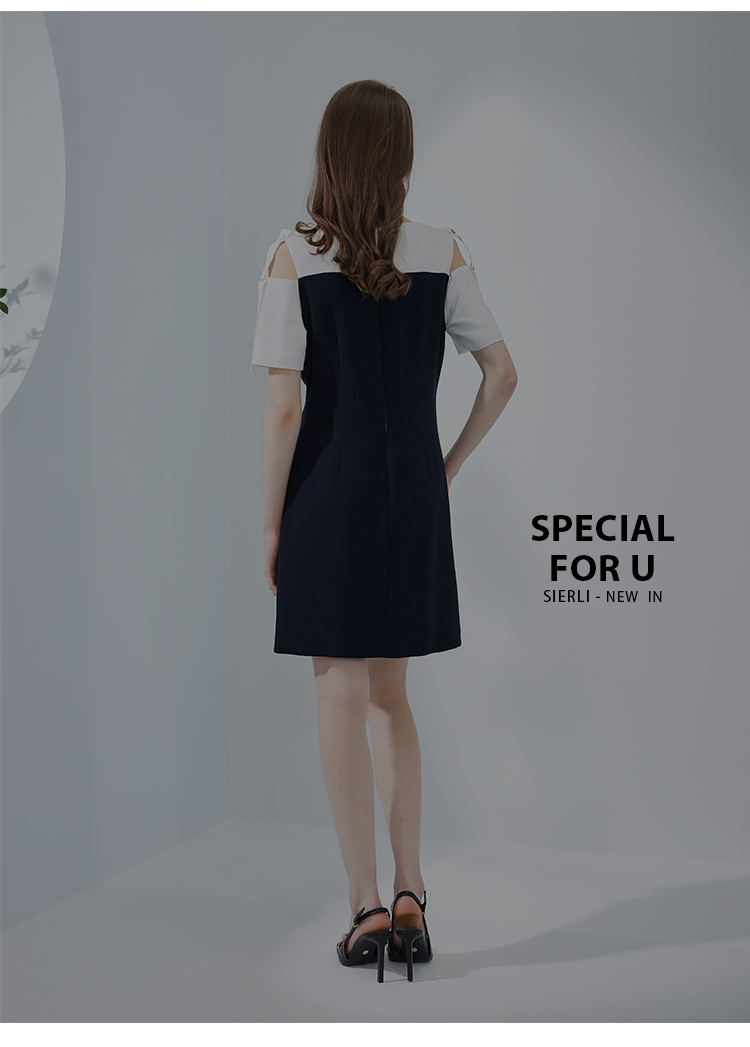 NF8N4斯尔丽瑟俪2023夏季新款设计浅漏肩肩带可脱卸修身显瘦连衣裙