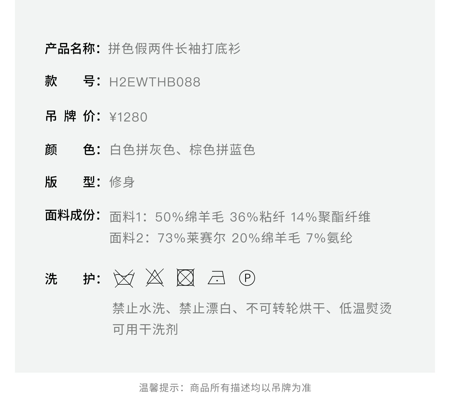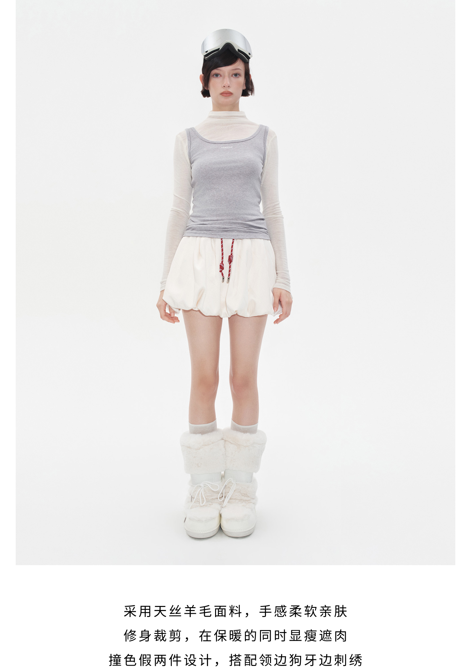 HERLIAN 2025年秋冬新品假两件拼色高领打底衫
