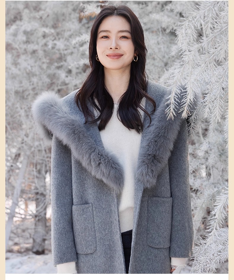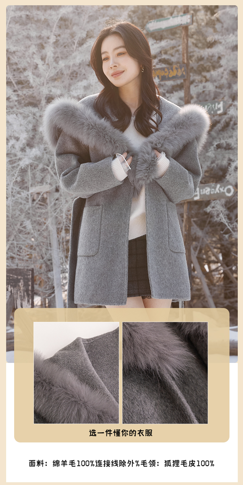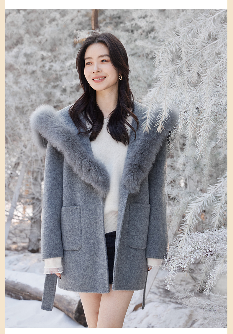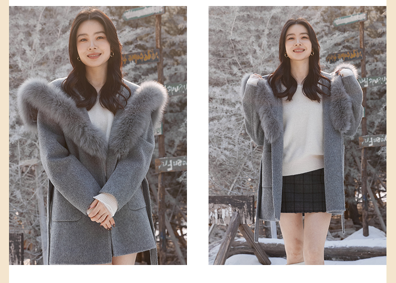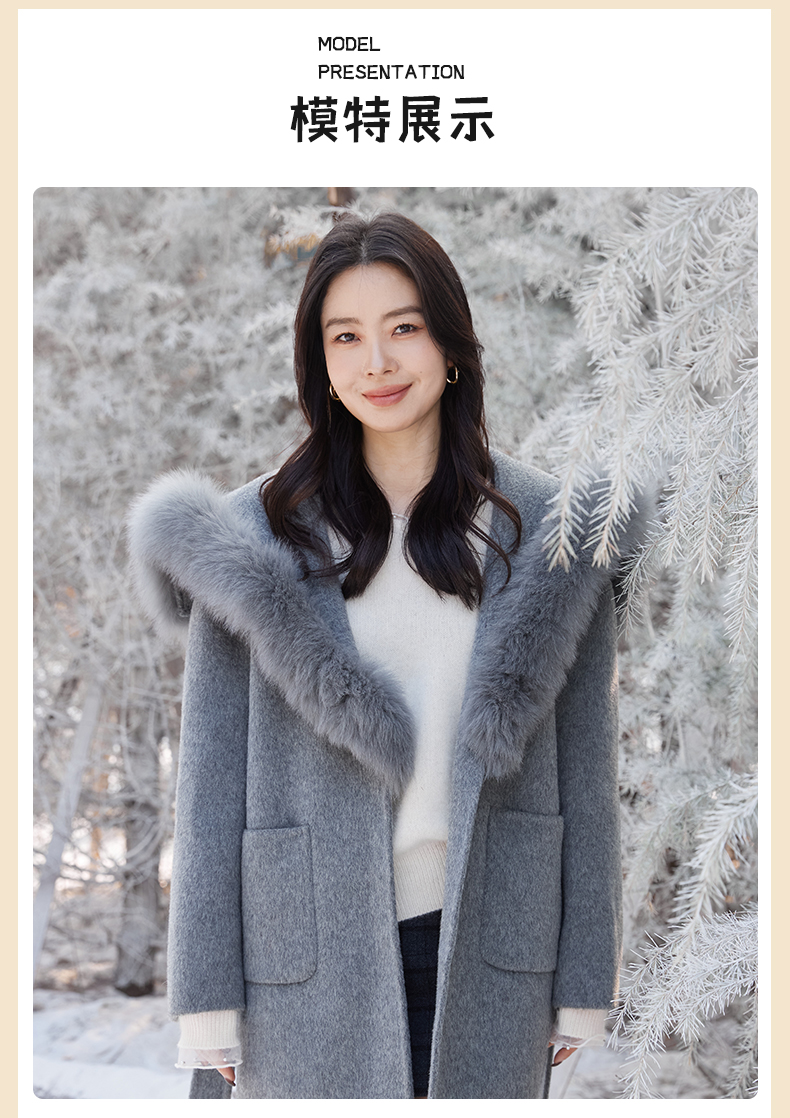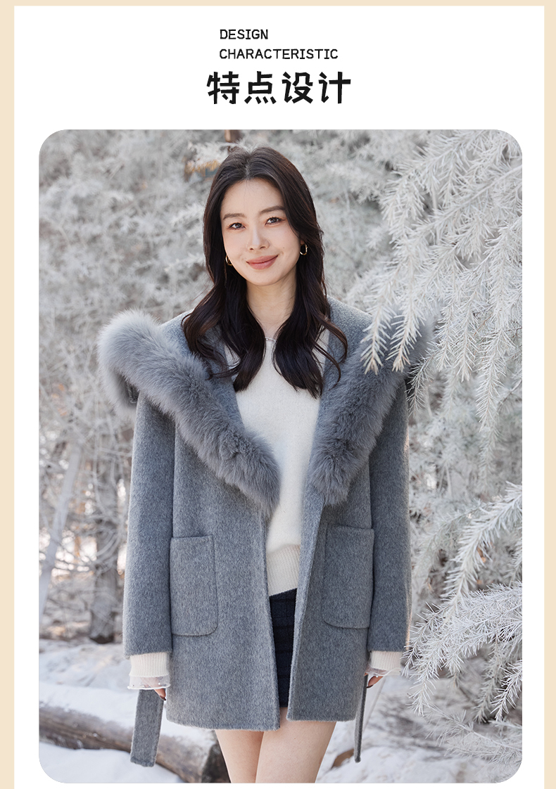 【门店同款】ENJOY冬季“暖冬软糖”海军领狐狸毛大衣 168143873