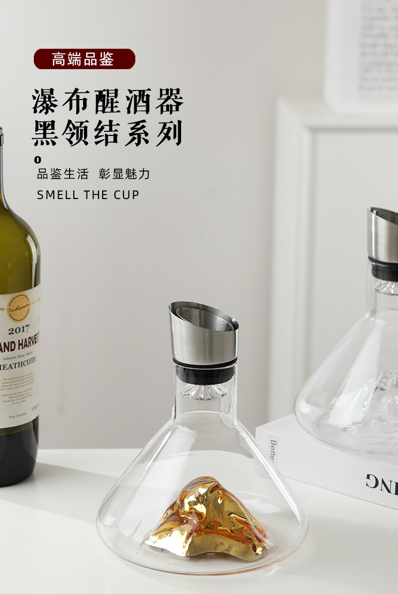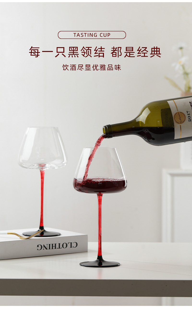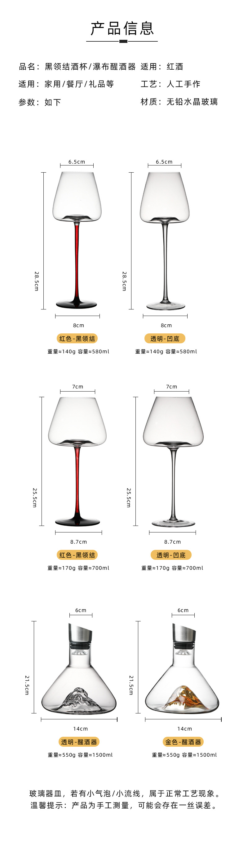 欧式勃艮第黑领结红酒杯瀑布式醒酒器水晶高脚杯葡萄酒杯酒具礼盒
