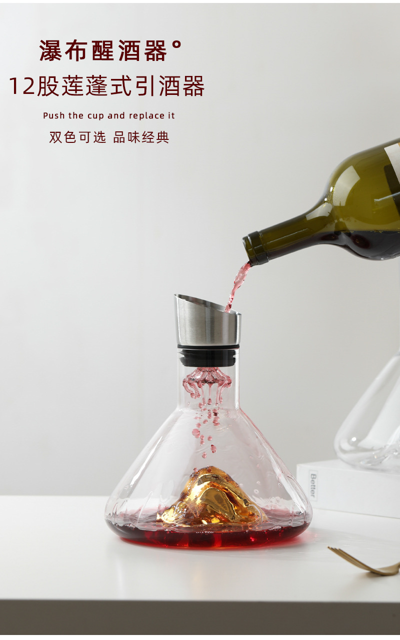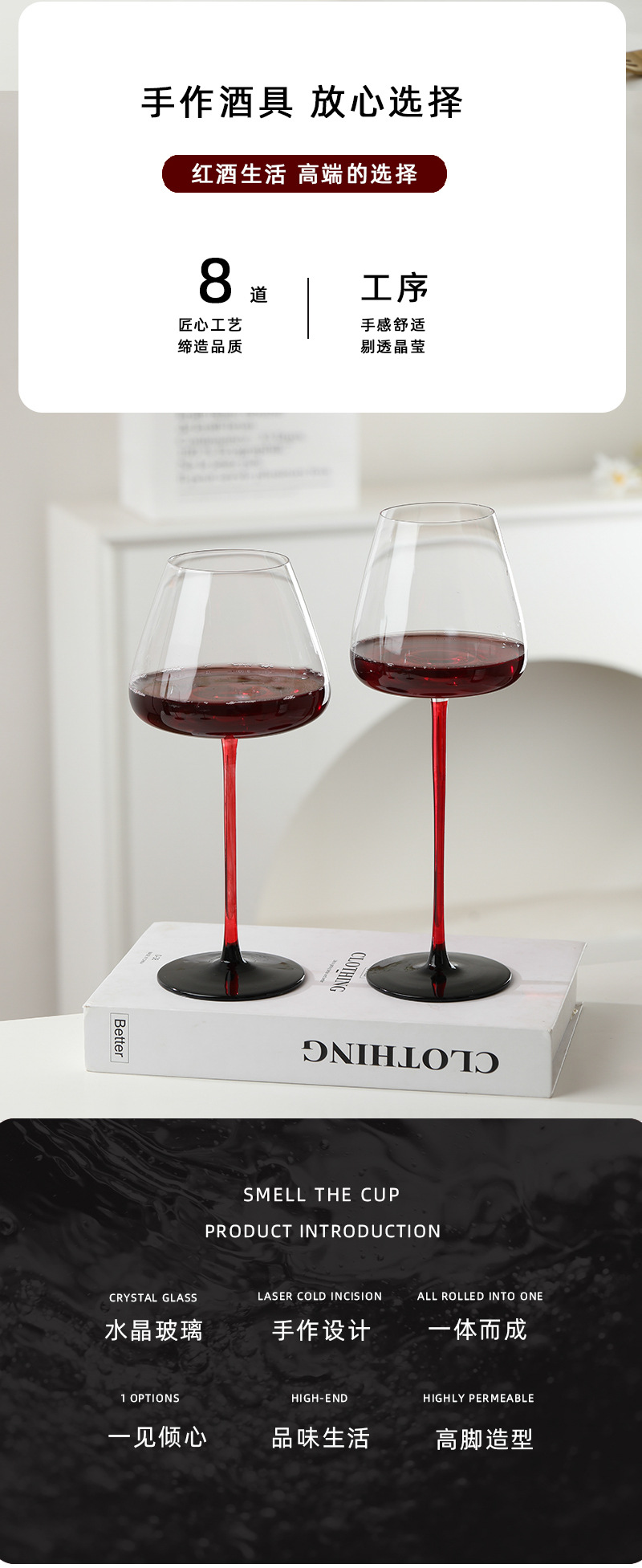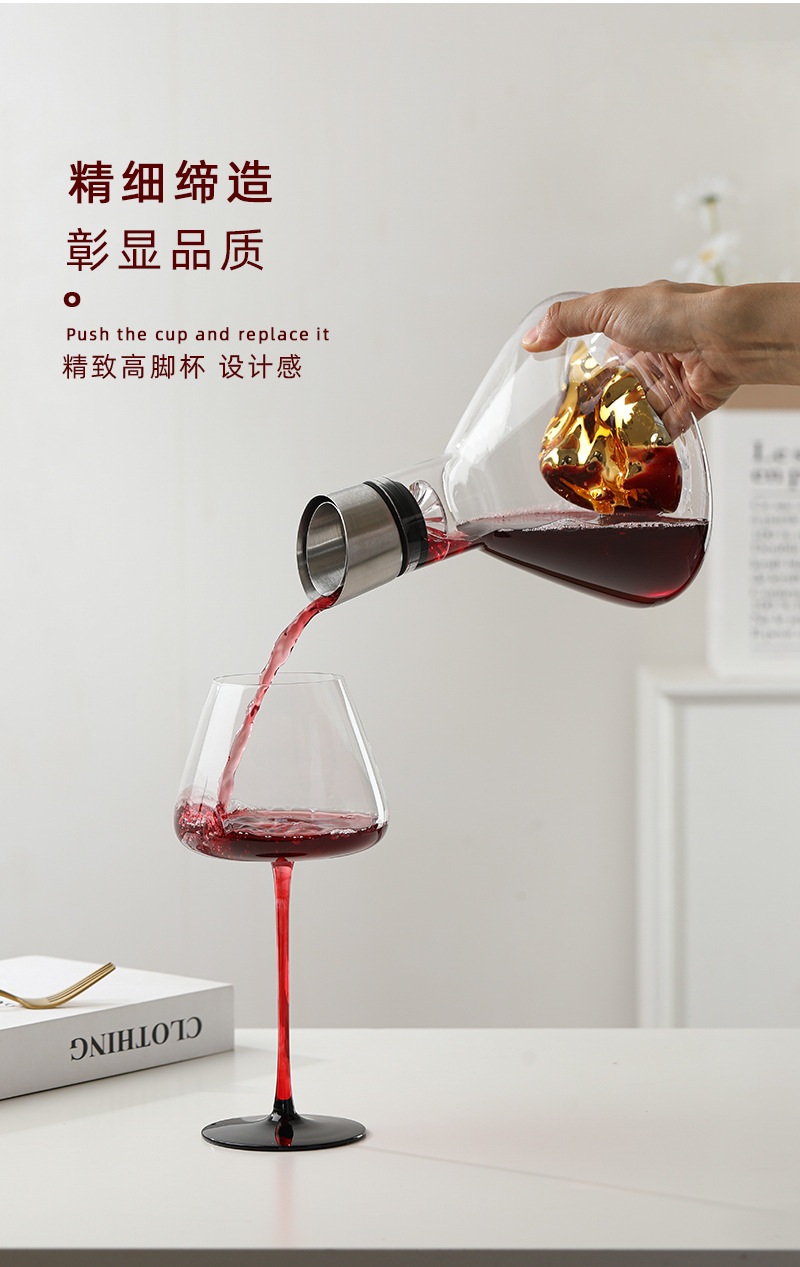 欧式勃艮第黑领结红酒杯瀑布式醒酒器水晶高脚杯葡萄酒杯酒具礼盒