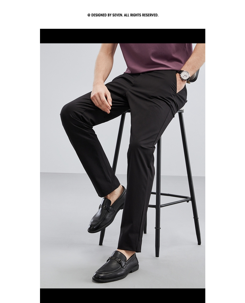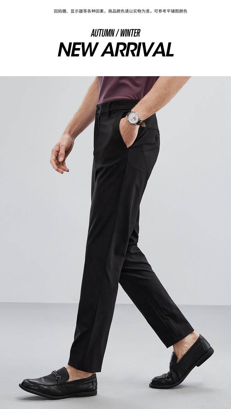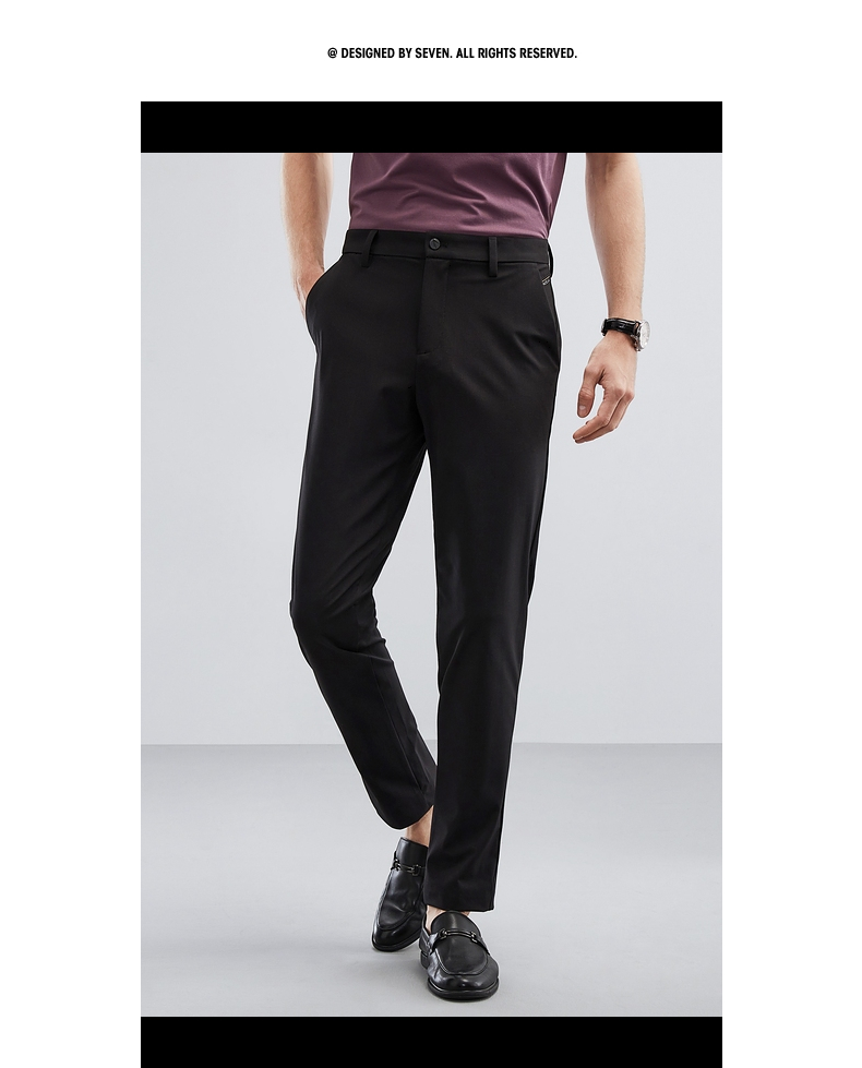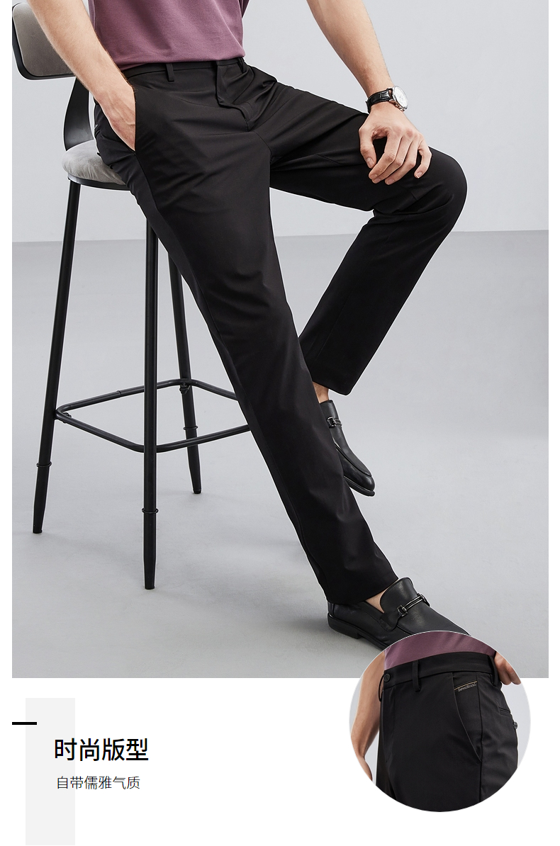 柒牌男装休闲裤春夏新款商务休闲时尚百搭男士黑色直筒长裤子 124H71820