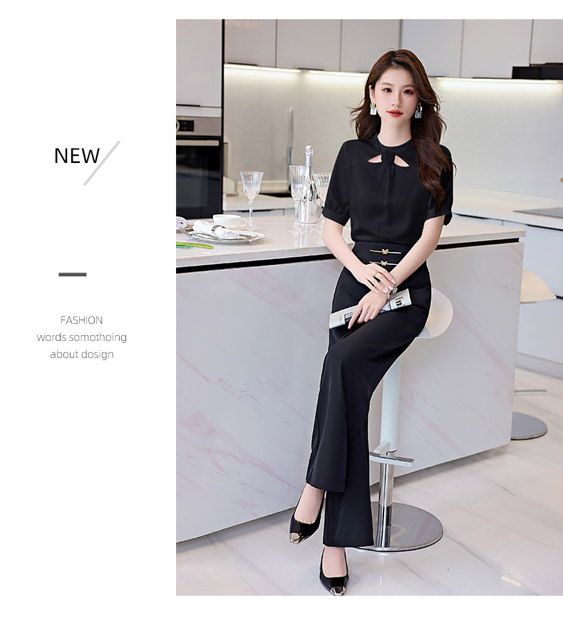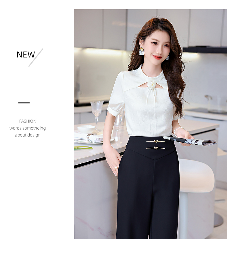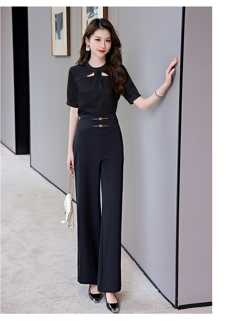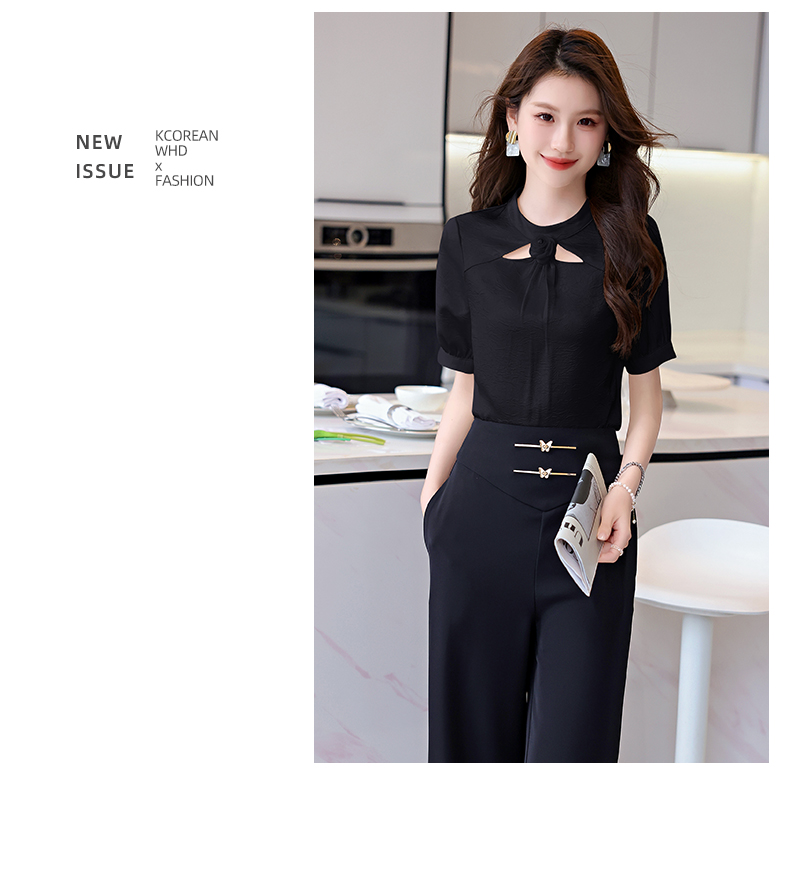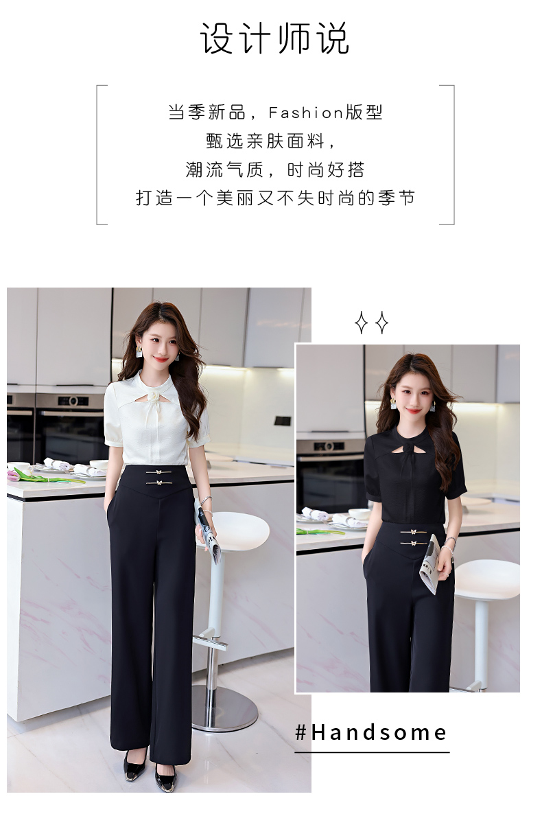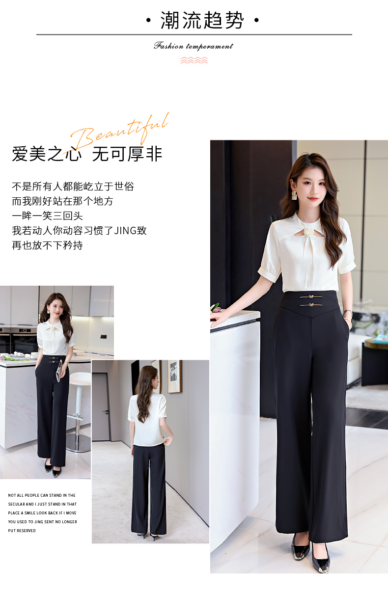 洋气减龄,衬衣气质高腰垂坠感阔腿裤套装HR-KJFA810-6