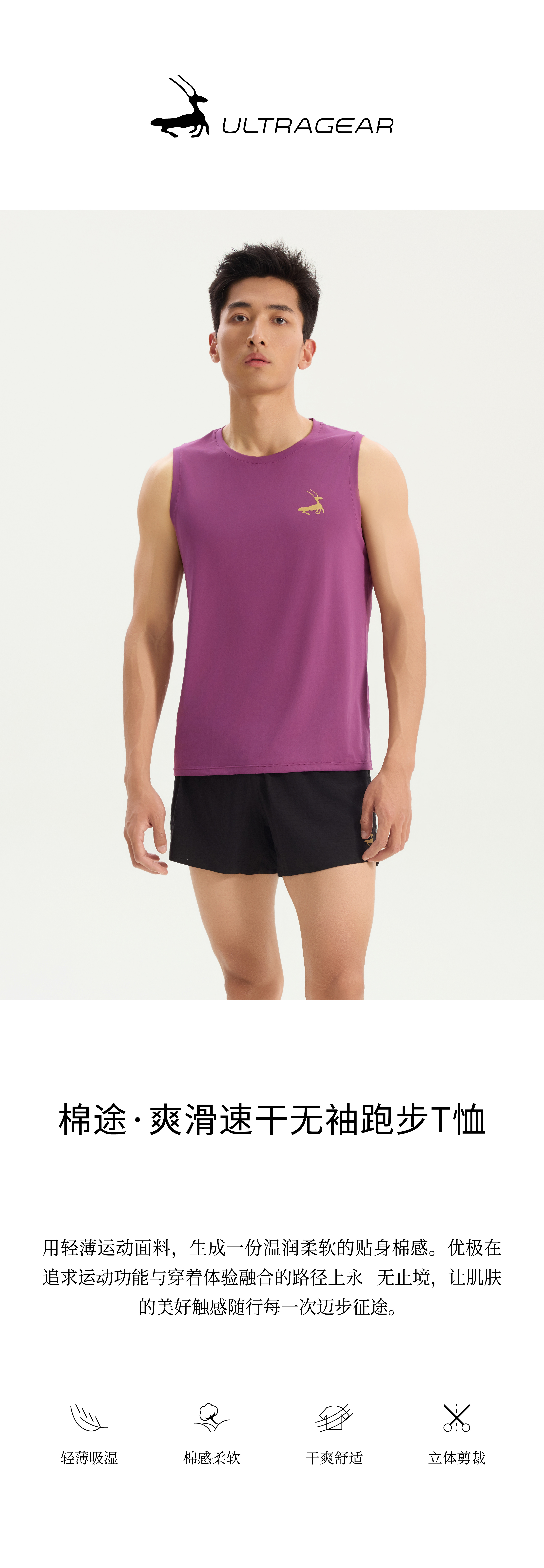 优极UG 棉途·男款爽滑速干无袖跑步T恤