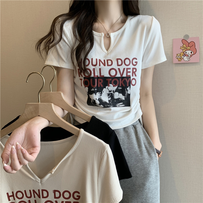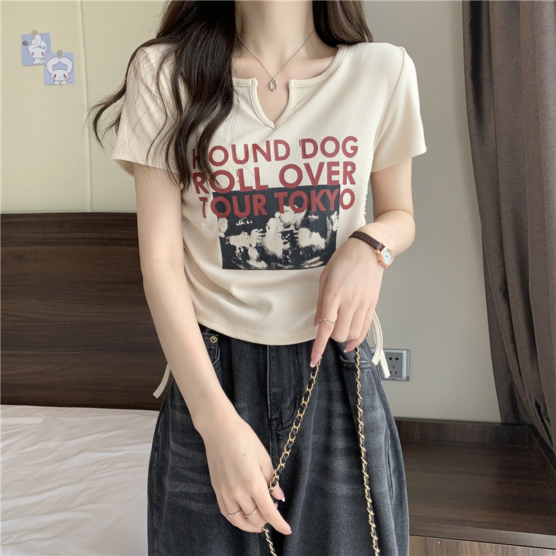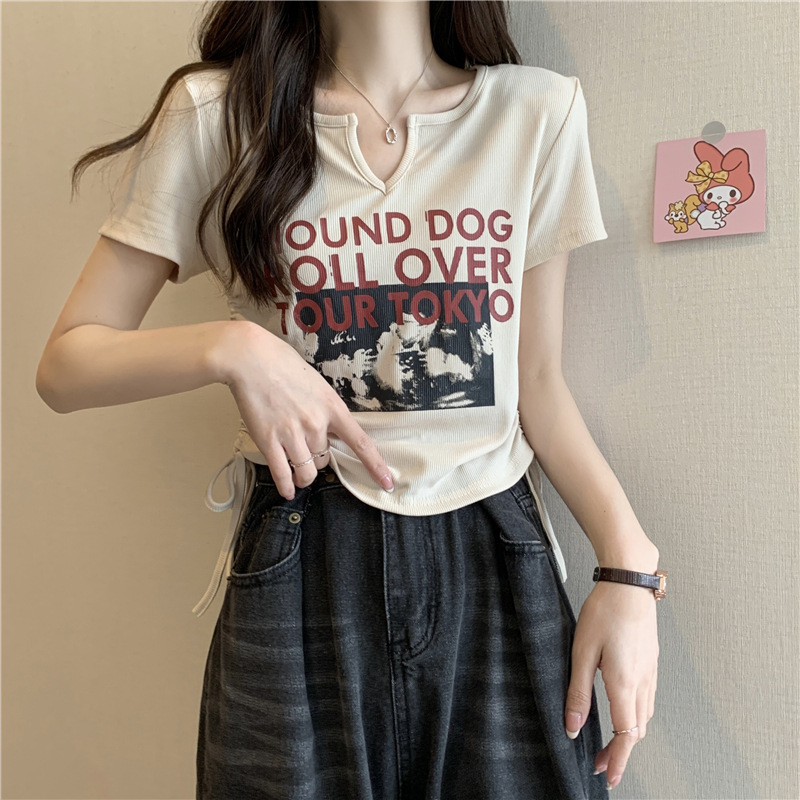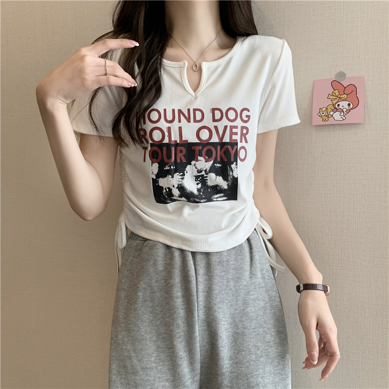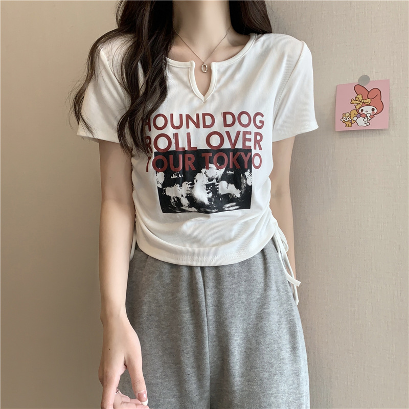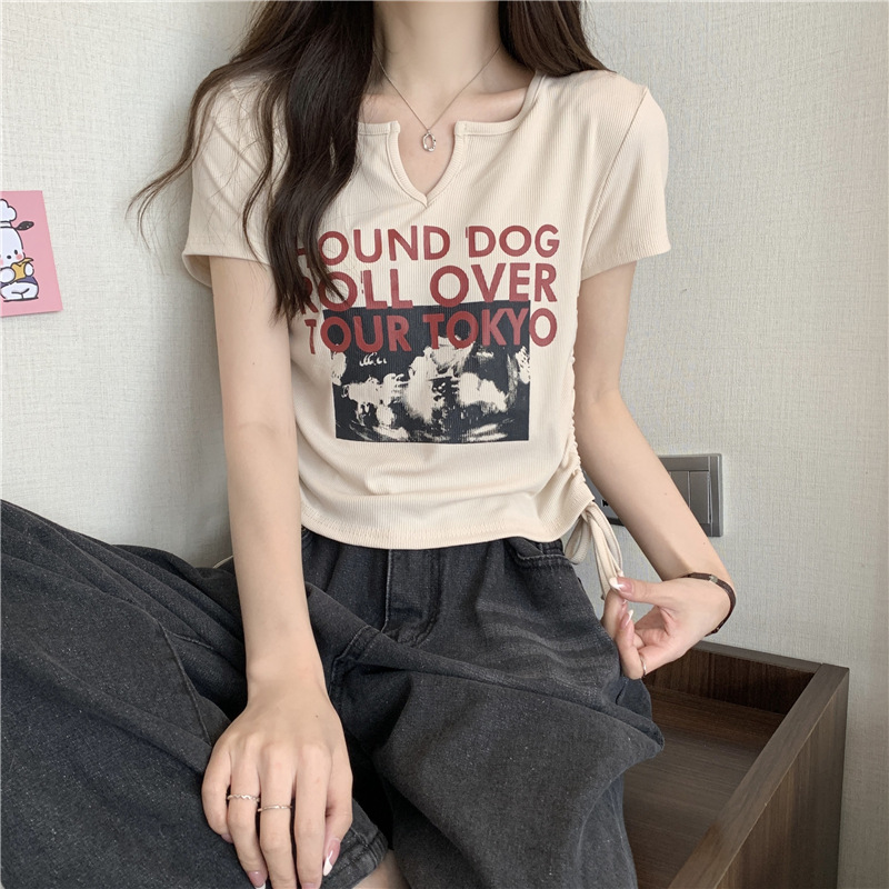 【微胖上衣女夏 韩系设计感修身显瘦遮肚短款上衣】修身显瘦、遮肚短款,再搭配上抽绳短袖,勾勒出女性曲线,要让自己更美丽动人。ry