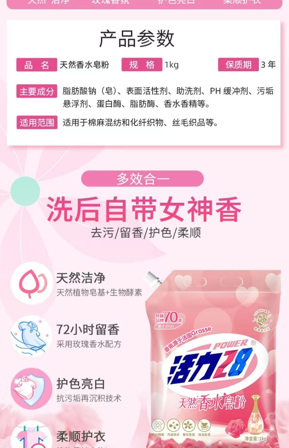 活力28洗衣皂粉大师香氛持久玫瑰精粹强力去污家庭装