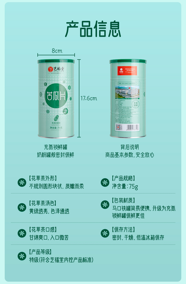 【专区3件83折】艺福堂 优质 苦瓜茶 选用苦瓜片 75克