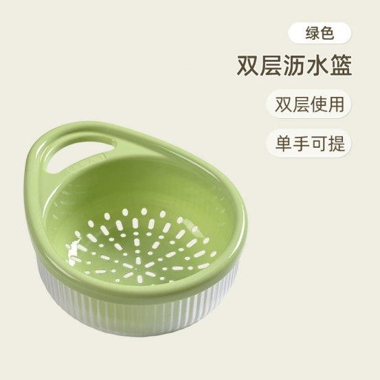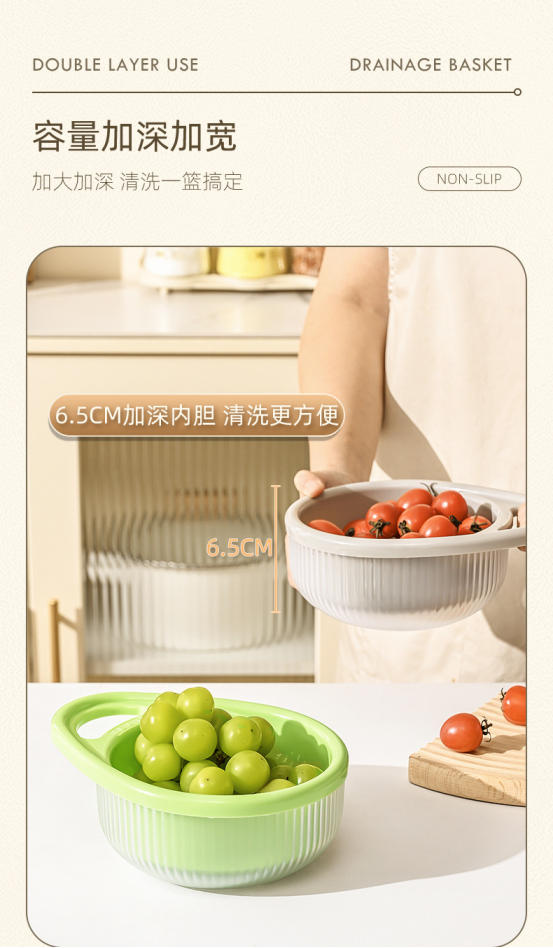 ✅双层设计 快速沥水 超级方便 ✅一物多用 可洗蔬菜洗水果 当果盘 可提式双层沥水篮 清洗/沥水/收纳 一步到位!