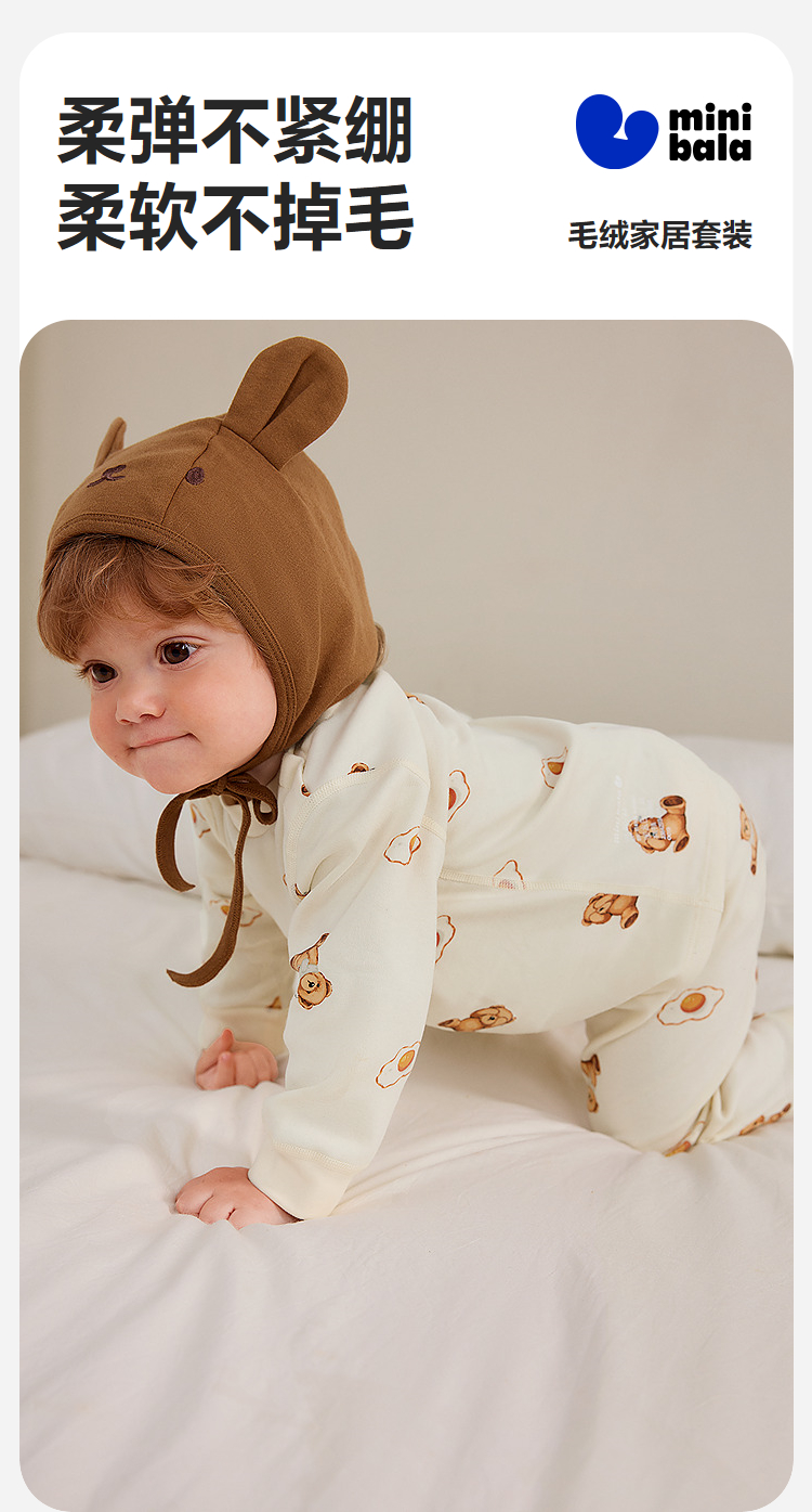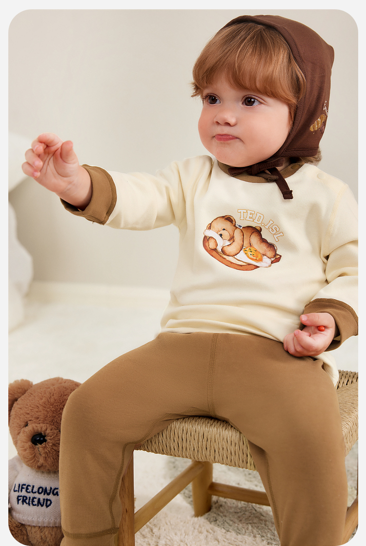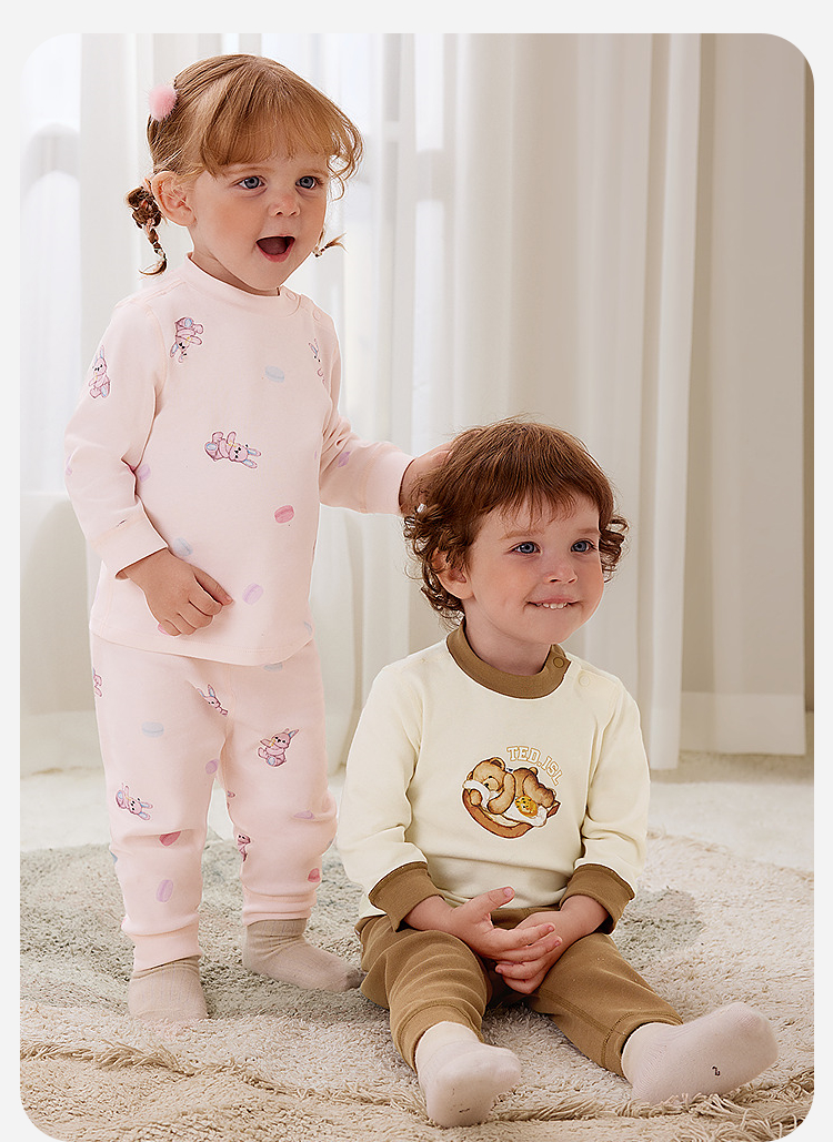 【泰迪熊IP联名】迷你巴拉儿童内衣套装宝宝亲肤棉弹家居服秋冬款