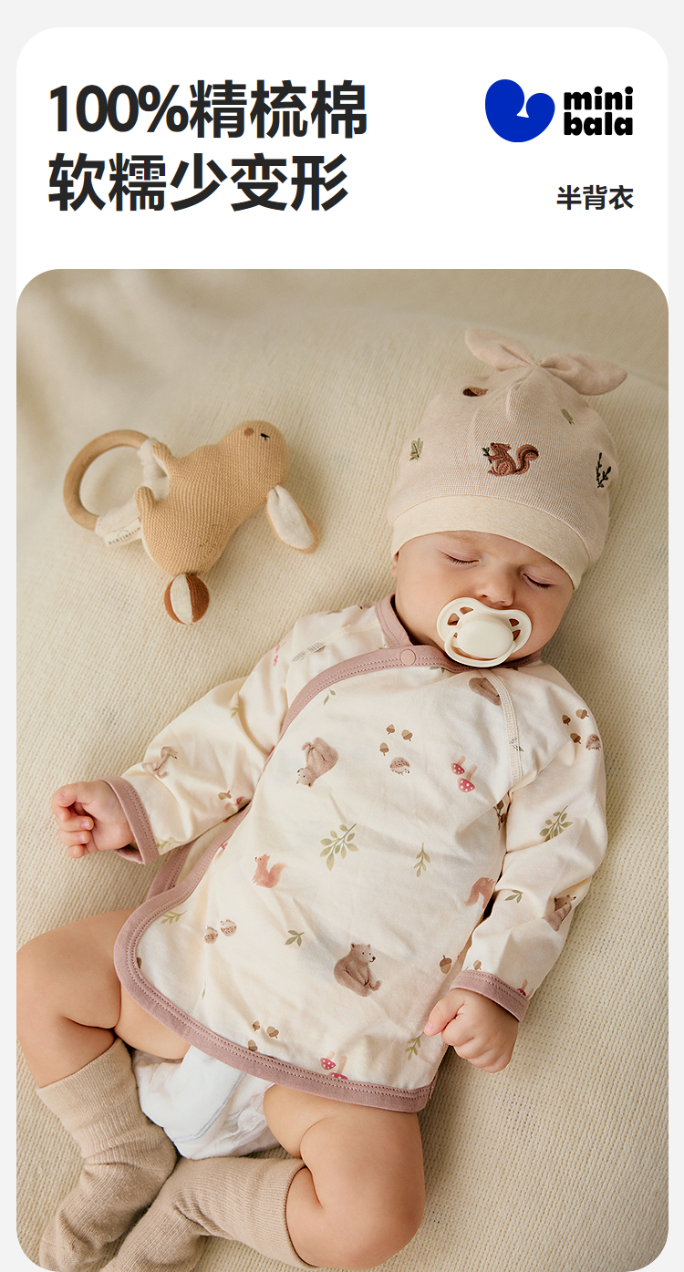 迷你巴拉巴拉婴儿衣服新生儿半背衣亲肤透气柔软爬家居上衣新款