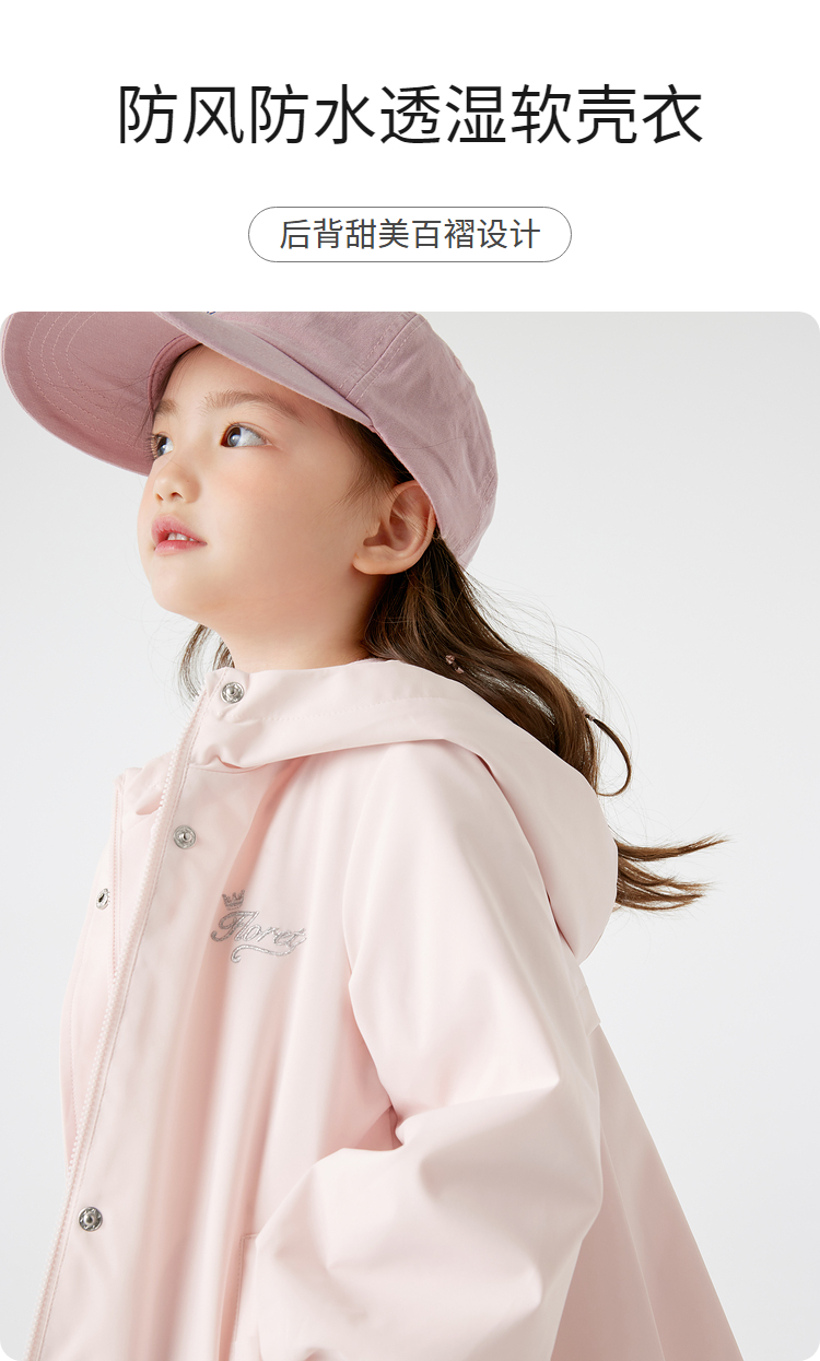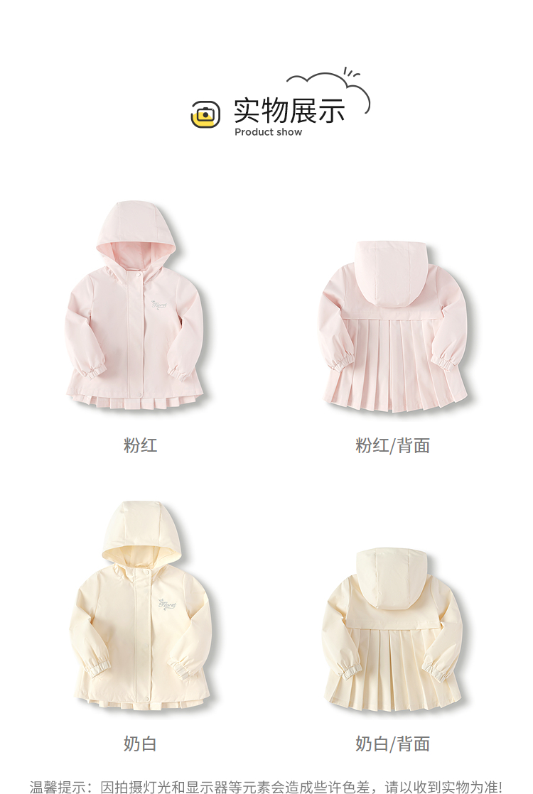 巴拉巴拉童装儿童外套女童连帽软壳衣秋甜美百褶上衣百搭小童衣服