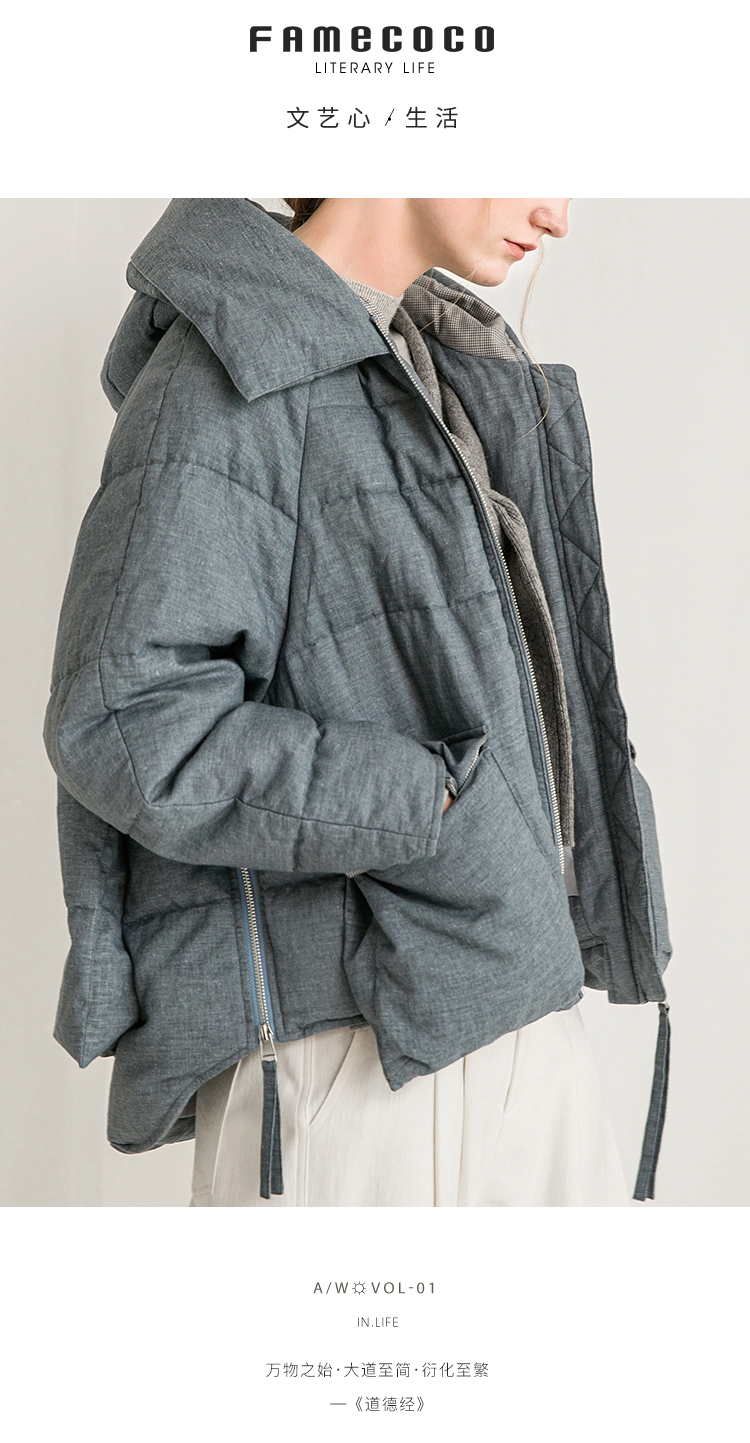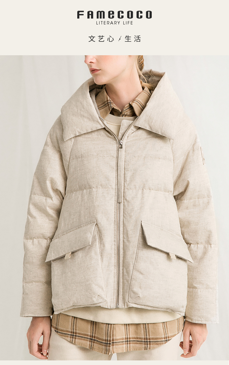 famecoco范可儿羽绒服女冬季短款翻领外套小个子F218AJ009