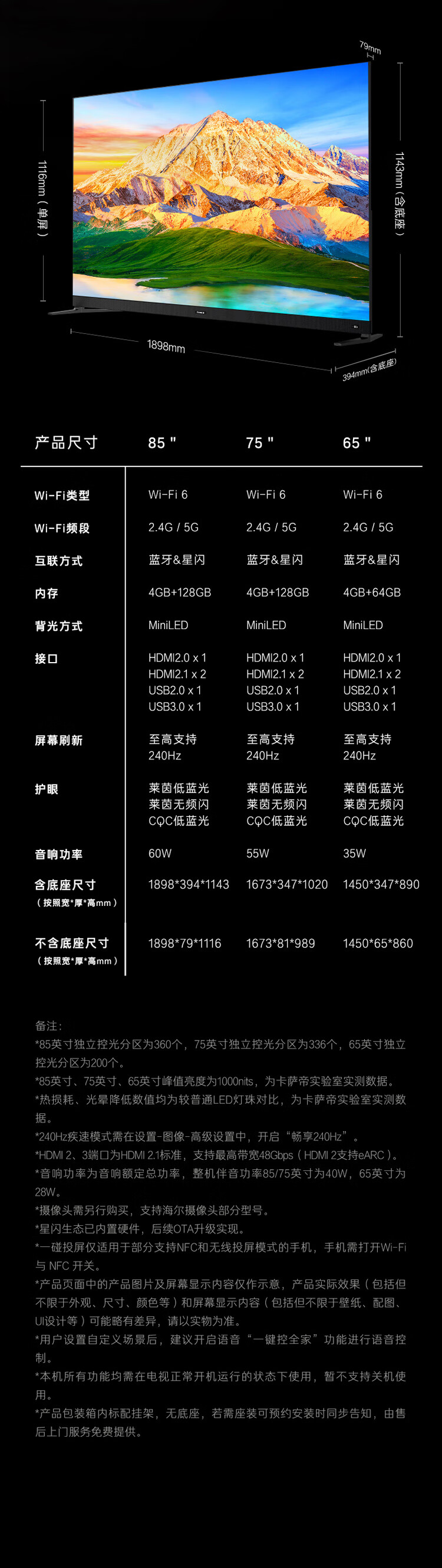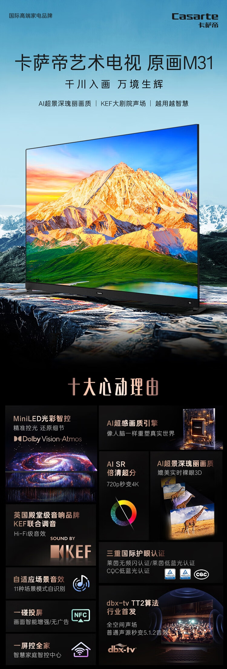 卡萨帝(Casarte)原画系列K85M31 85英寸MiniLED纤薄边框4K超高清240Hz巨幕HIFI级音响4GB+128GB家用电视以旧换新