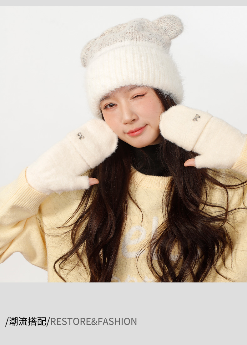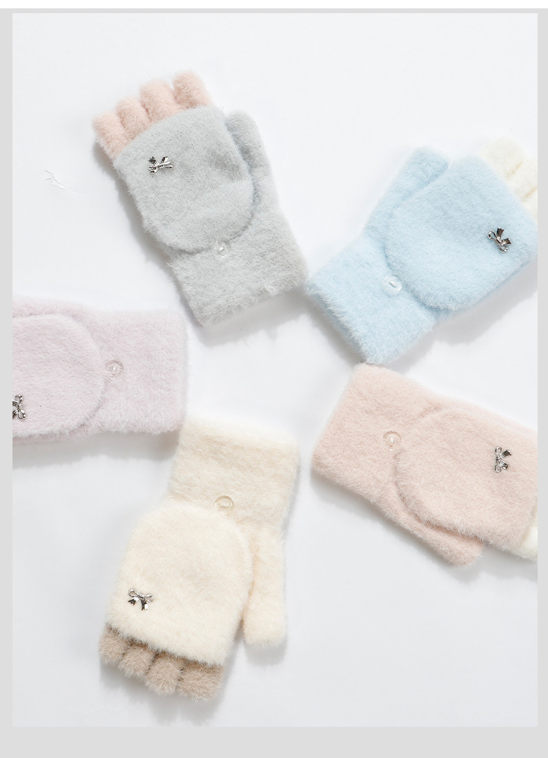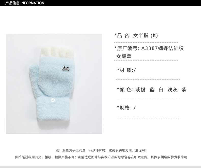 蝴蝶结针织女翻盖女半指手套-纪念日百货门店同款165295302