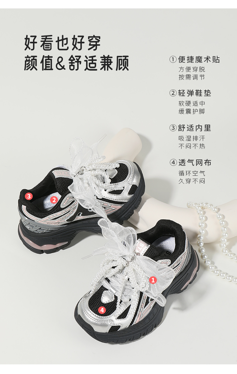 【童鞋】星期六甜美珍珠蝴蝶结绒里可选厚底男女童老爹鞋SSC3192L32/SSC419DLAJ