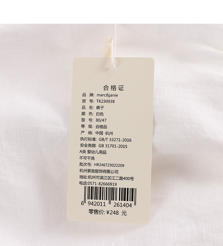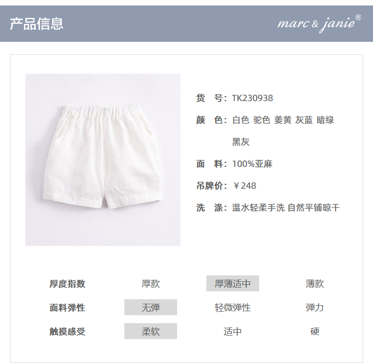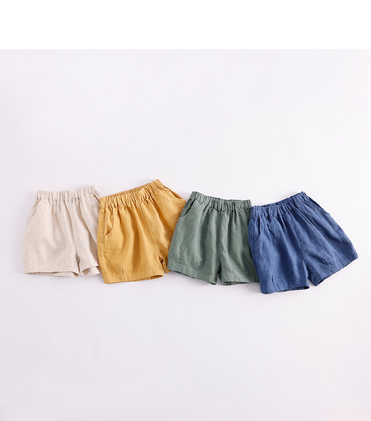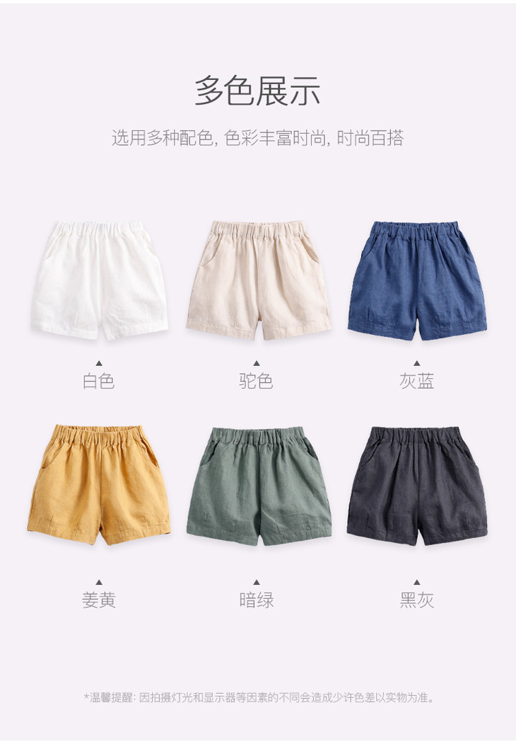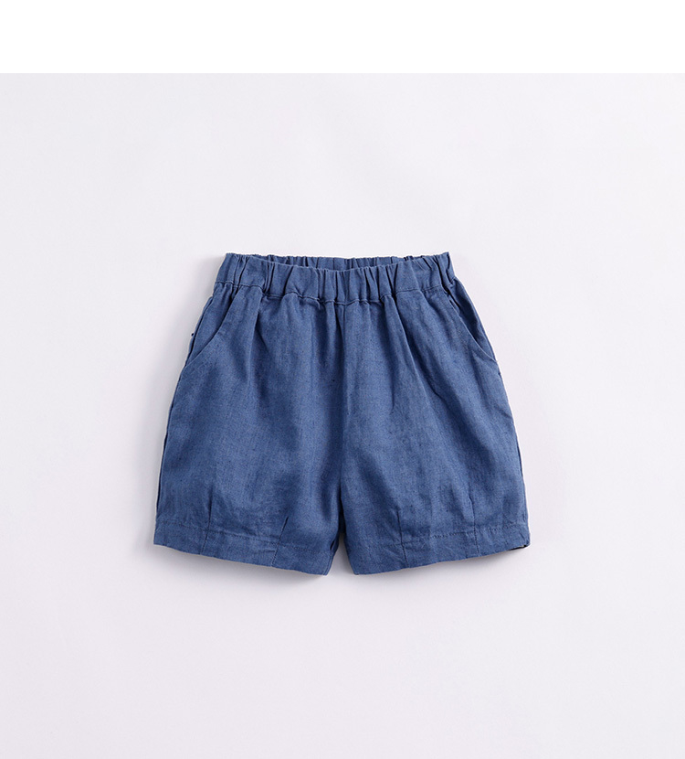 马克珍妮夏装男女童天然亚麻透气五分短裤 儿童裤子230938
