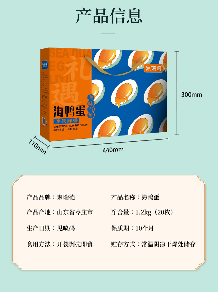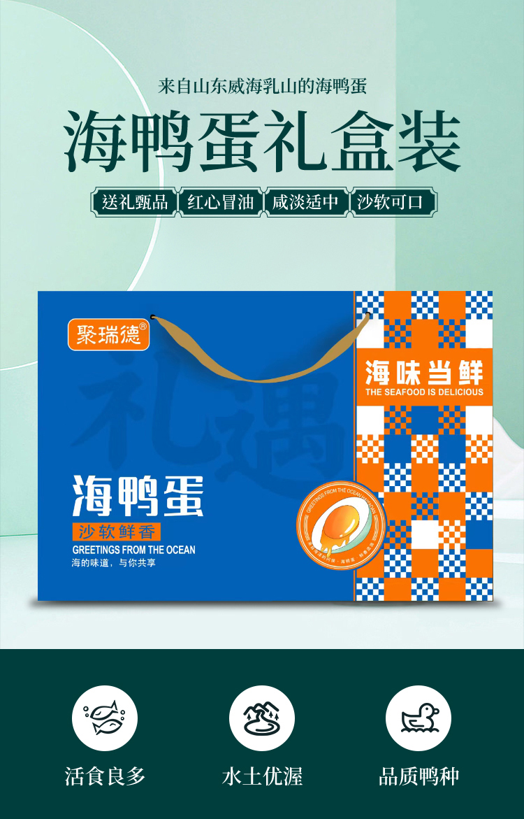 聚瑞德 海鸭蛋沙软鲜香流油熟咸蛋 山东威海乳山特产20枚 1.2kg