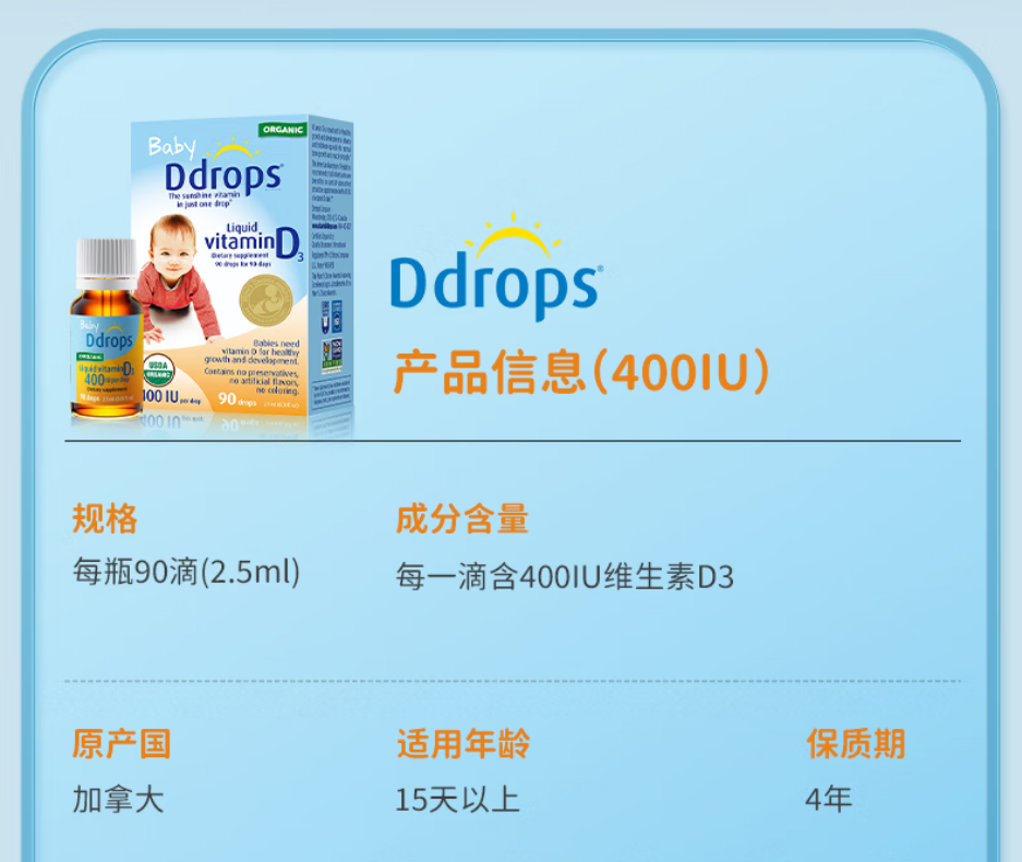 Ddrops幼儿维生素D3滴剂 2.8ml