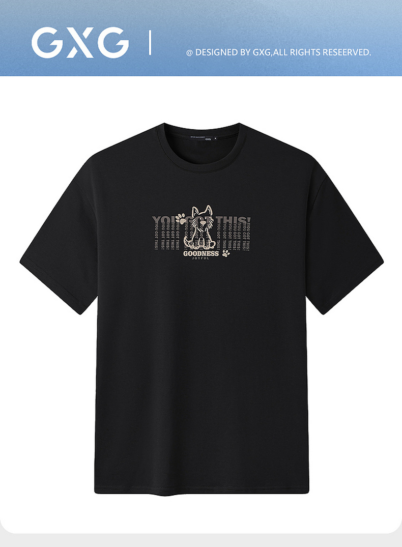 GXG男装【100%棉】26夏季卡通手绘小狗轻薄透气男式圆领短袖T恤K&C