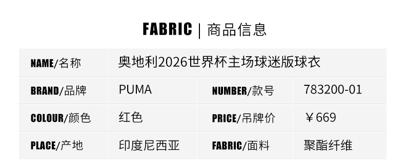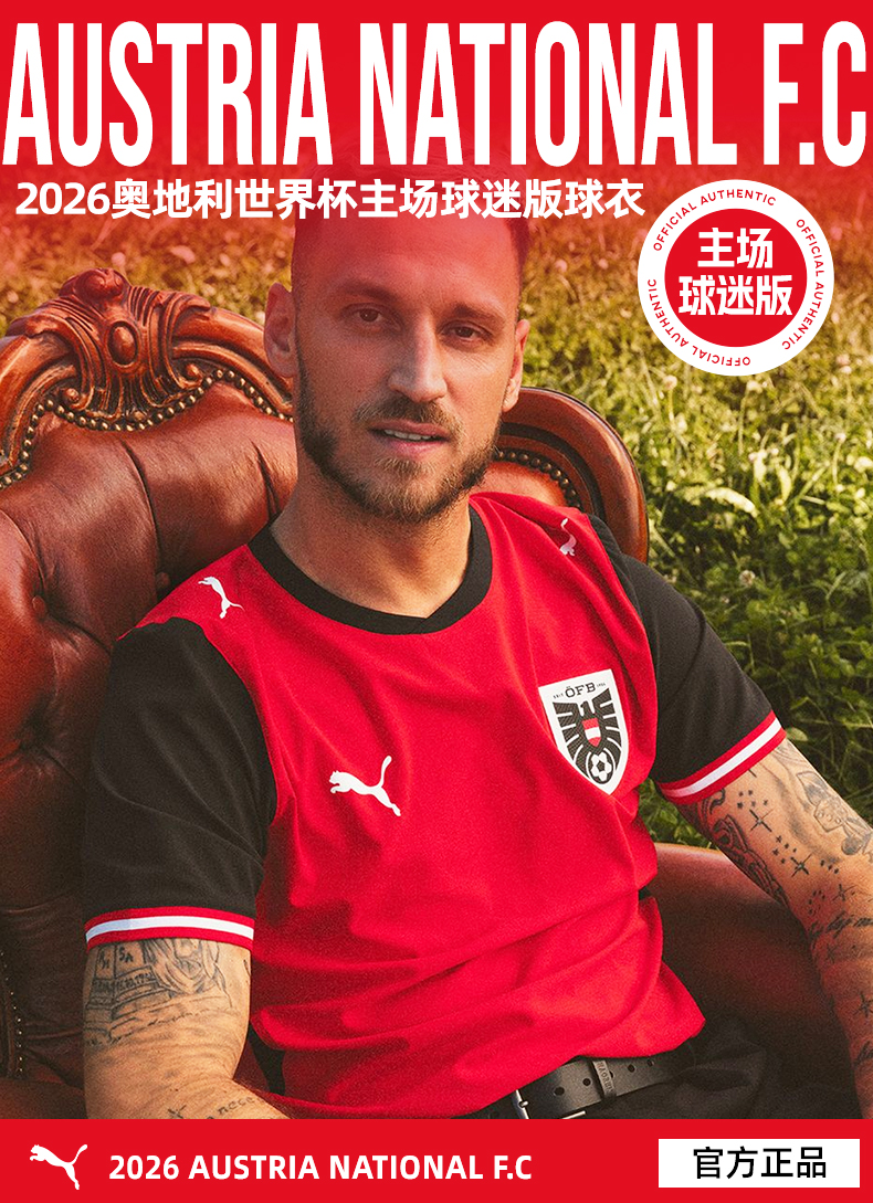 SFS彪马Puma2026世界杯奥地利主场球迷版球衣短袖足球服783200-01
