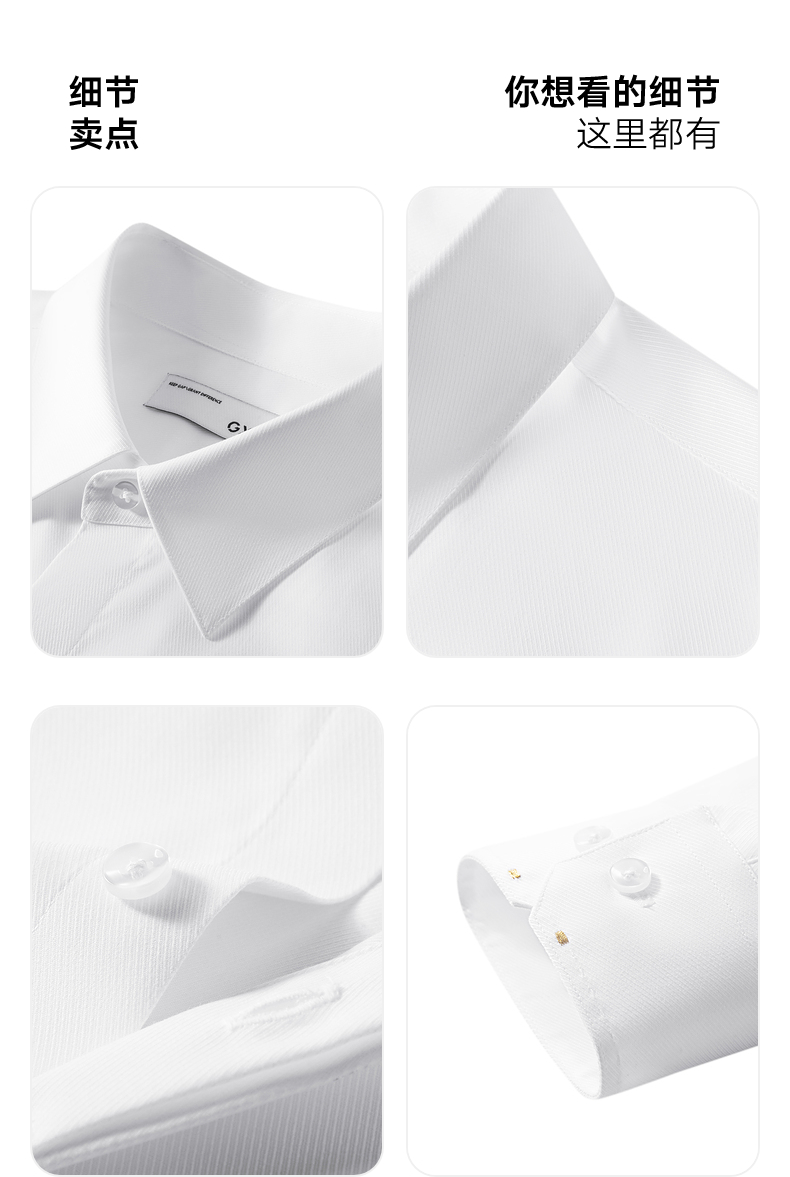 GXG男装 白色肌理简约时尚免烫长袖衬衫 24年秋季热卖G24X033030