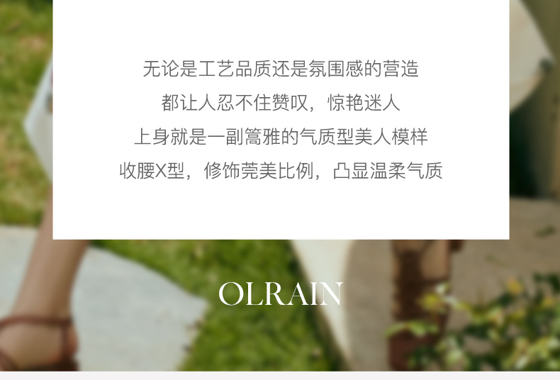 - “精致”是欧芮儿olrain品牌文化的核心,欧芮儿认为,精致的女人,不但要外在动人,更要内在迷人,内外兼修,有魅力、有气质、有内涵,自信而不自傲,优雅而不矫揉,自有万种风情而不轻浮,更不故作矜持。