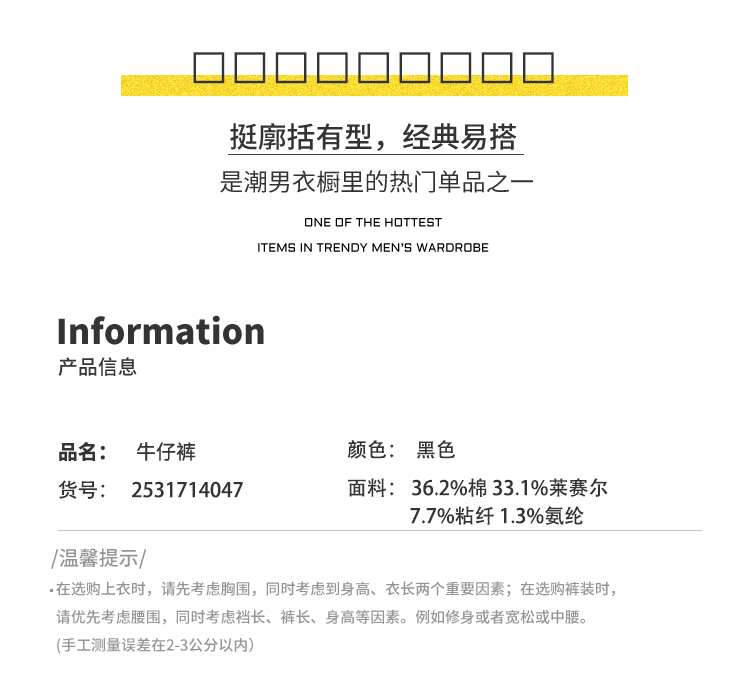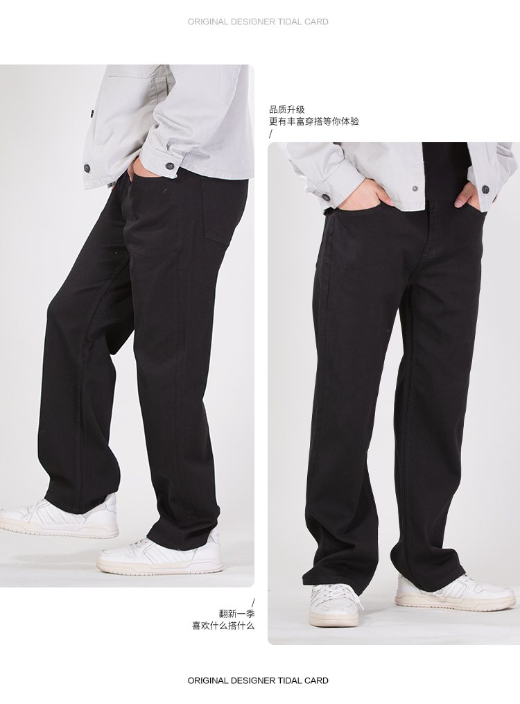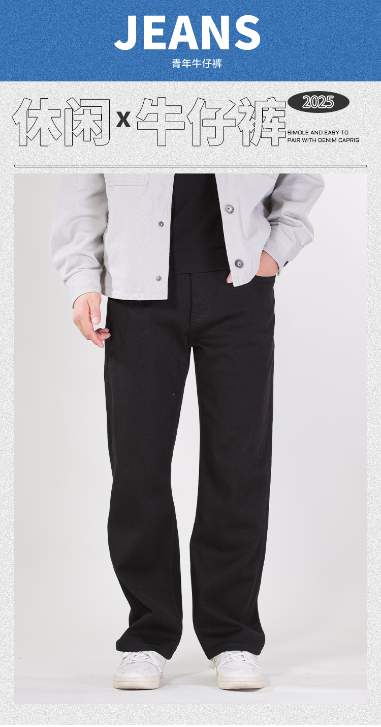 DRONKOO 2025 正常腰高弹黑牛中厚牛仔长裤