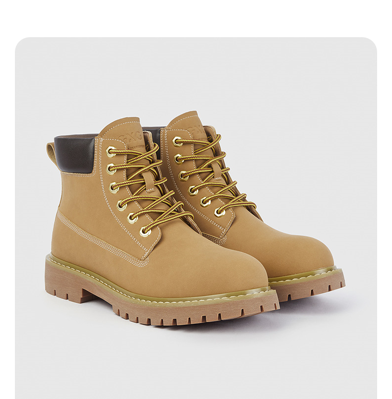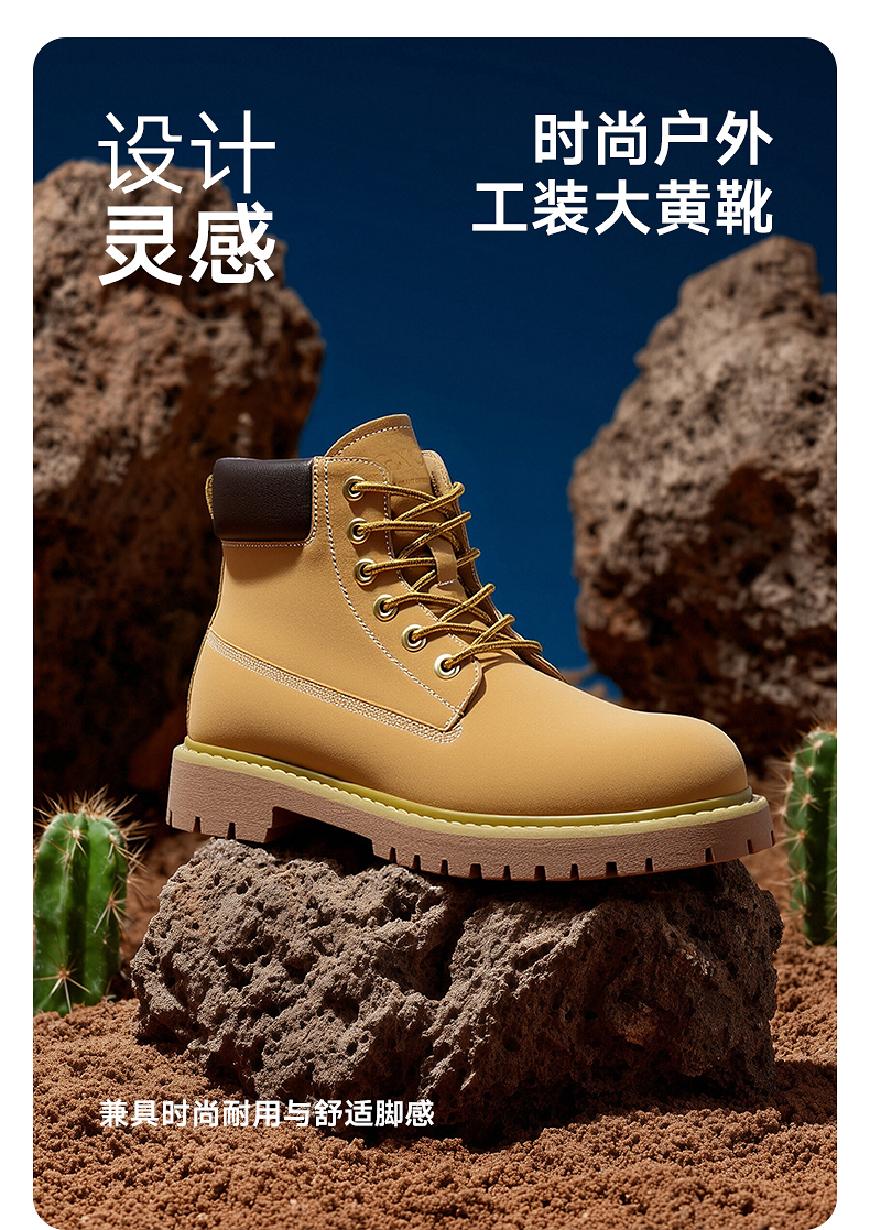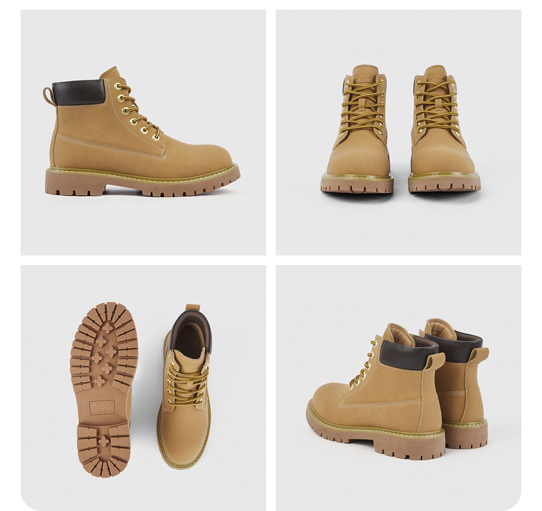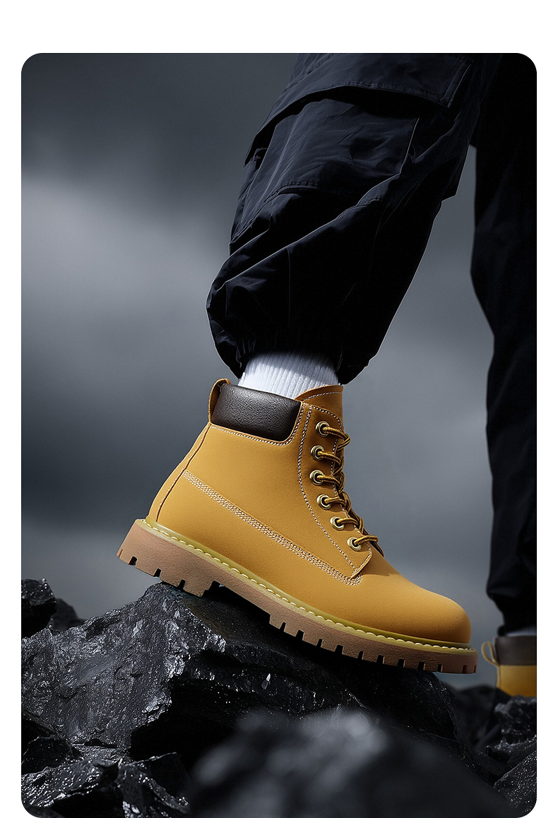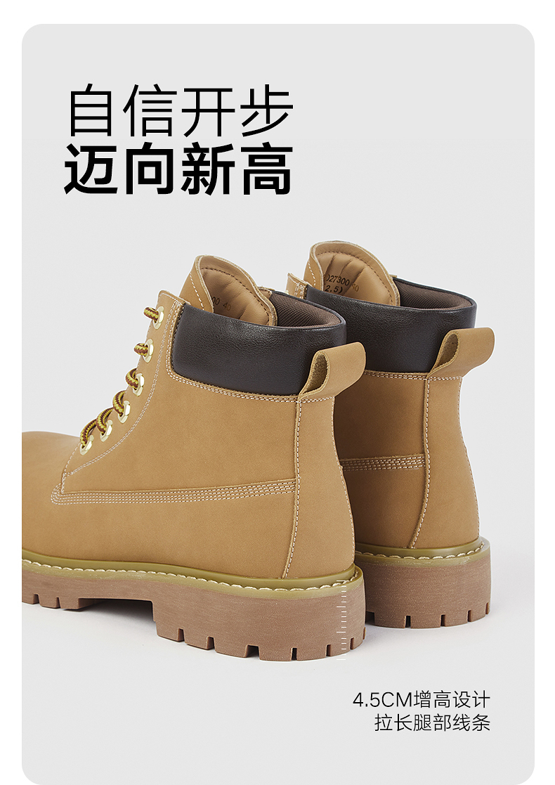 GXG通勤男鞋休闲百搭高帮马丁靴工装户外登山鞋增高大黄靴