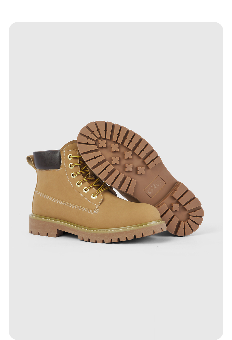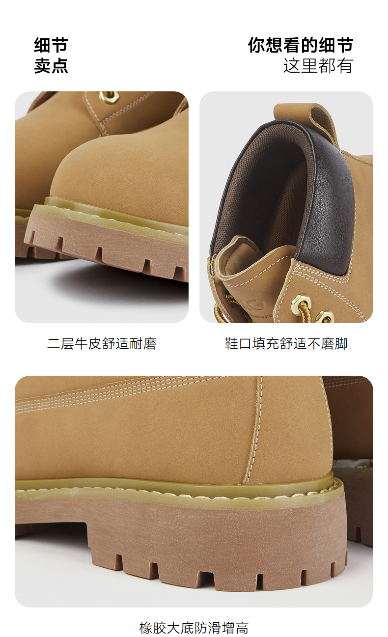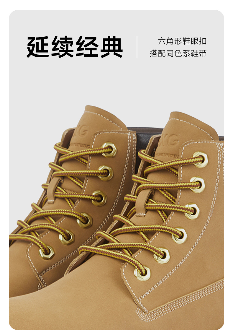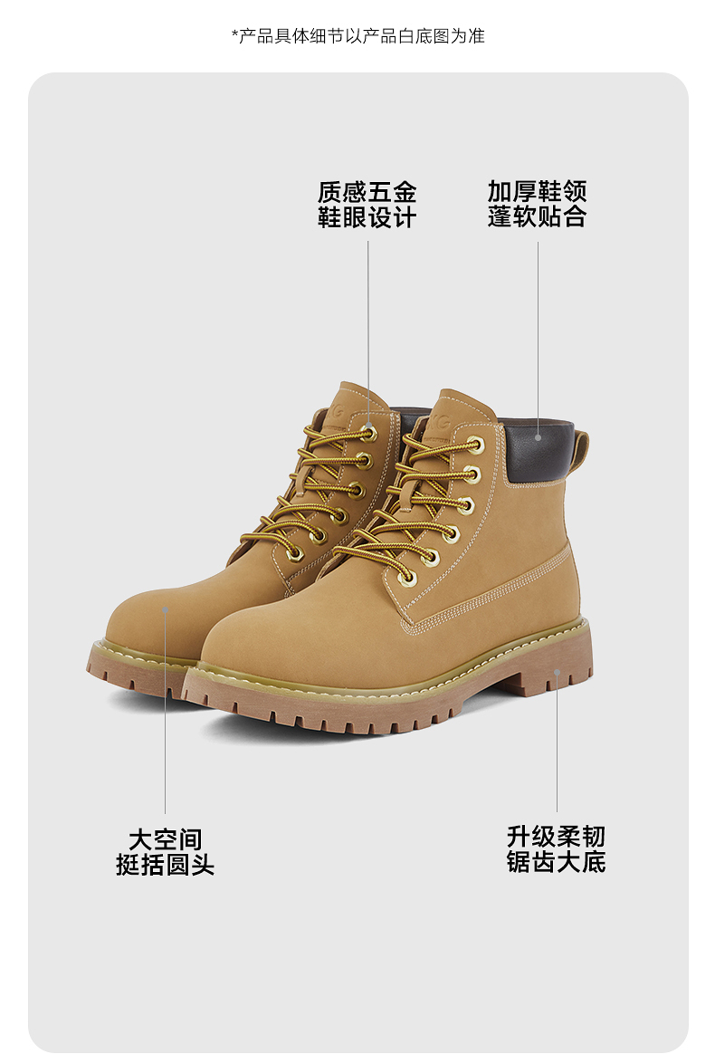 GXG通勤男鞋休闲百搭高帮马丁靴工装户外登山鞋增高大黄靴