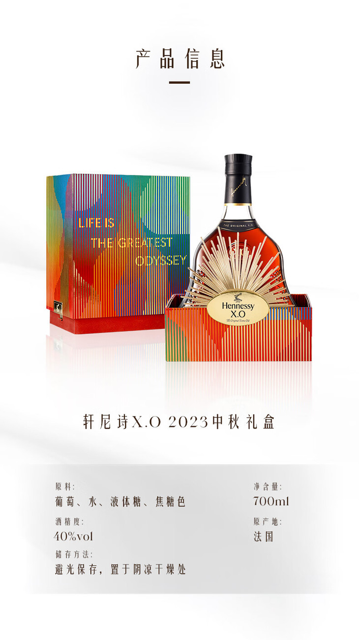 轩尼诗XO 2023年中秋礼盒 干邑白兰地700ml