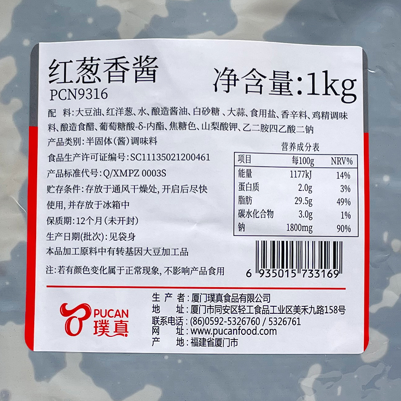 璞真红葱香酱1kg 9316香葱酱葱头酱商用拌饭拌面酱葱油酱调料